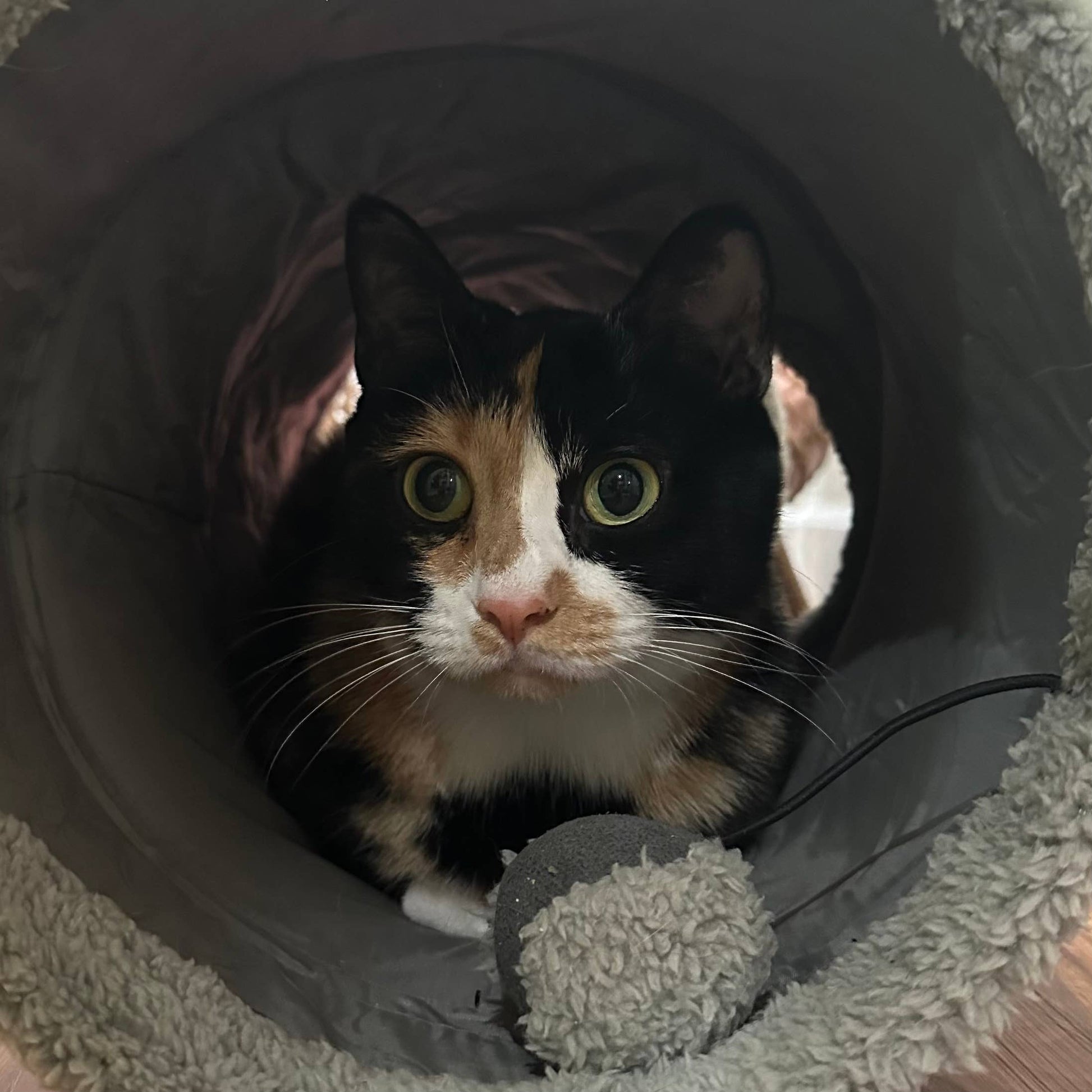 3 years ago, Lollie came to us as an owner surrender. Her human mother was fleeing a domestic violence situation and needed a safe place for Lollie as she was heading across the country to her family in Oregon. Lollie bonded so well with all the other rescue cats and kittens that we decided to keep her as a permanent resident (as well as her BFF Maria). She is the sweetest cat in the world and helps us raise all the orphan kittens that come through our doors.