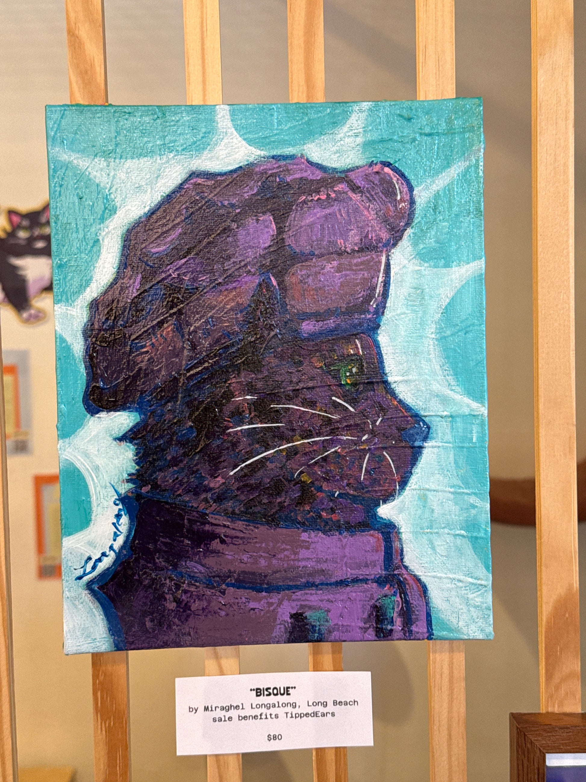 Original 8x10 painting by Miraghel Longalong from Long Beach. 100% of the sale will be donated to TippedEars, the rescue that saved Bisque! While Bisque has already been adopted, you can find more of TippedEars' adoptable cats here.