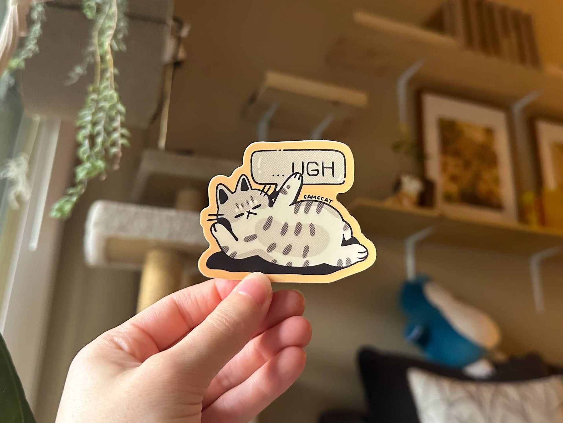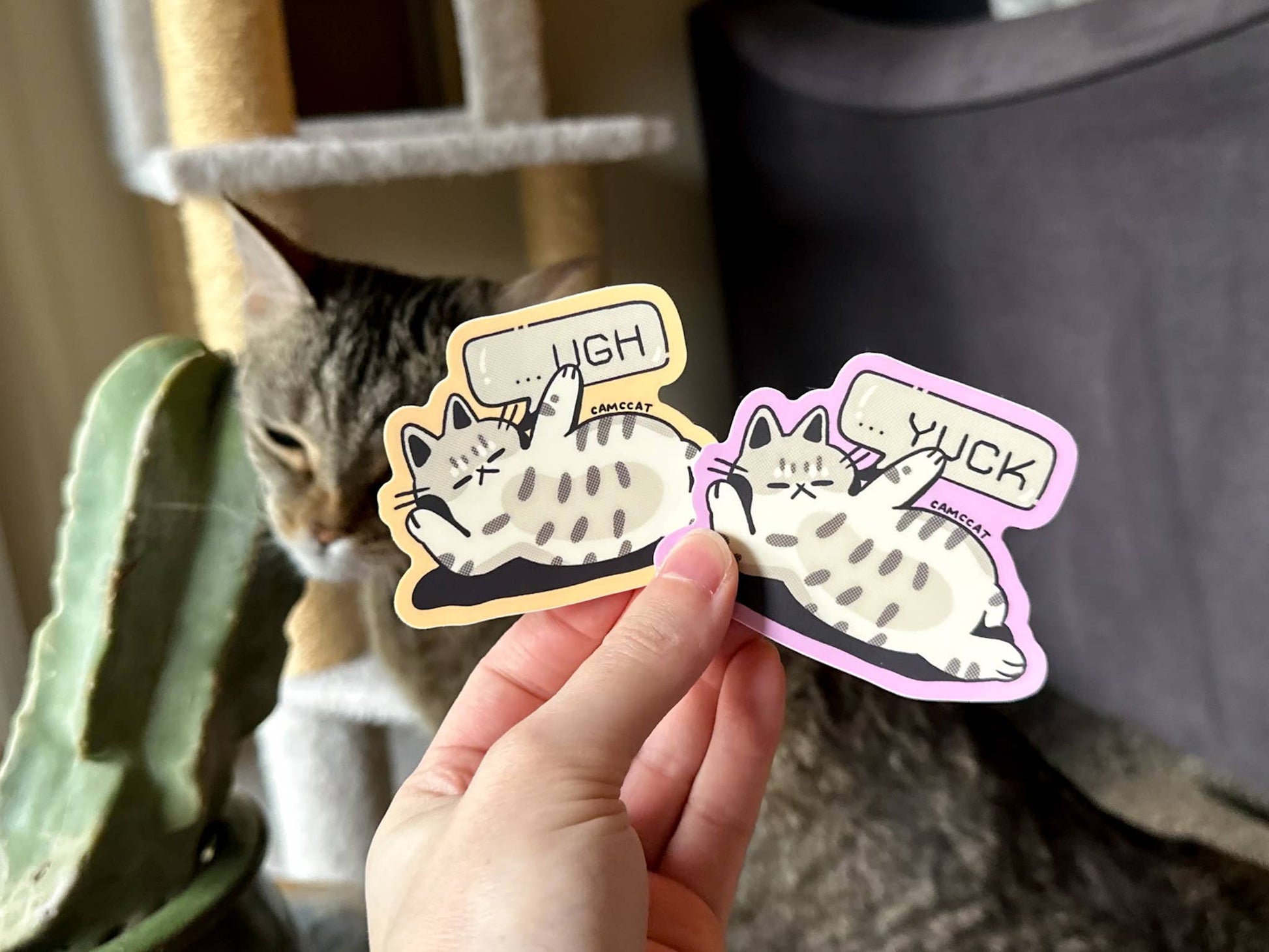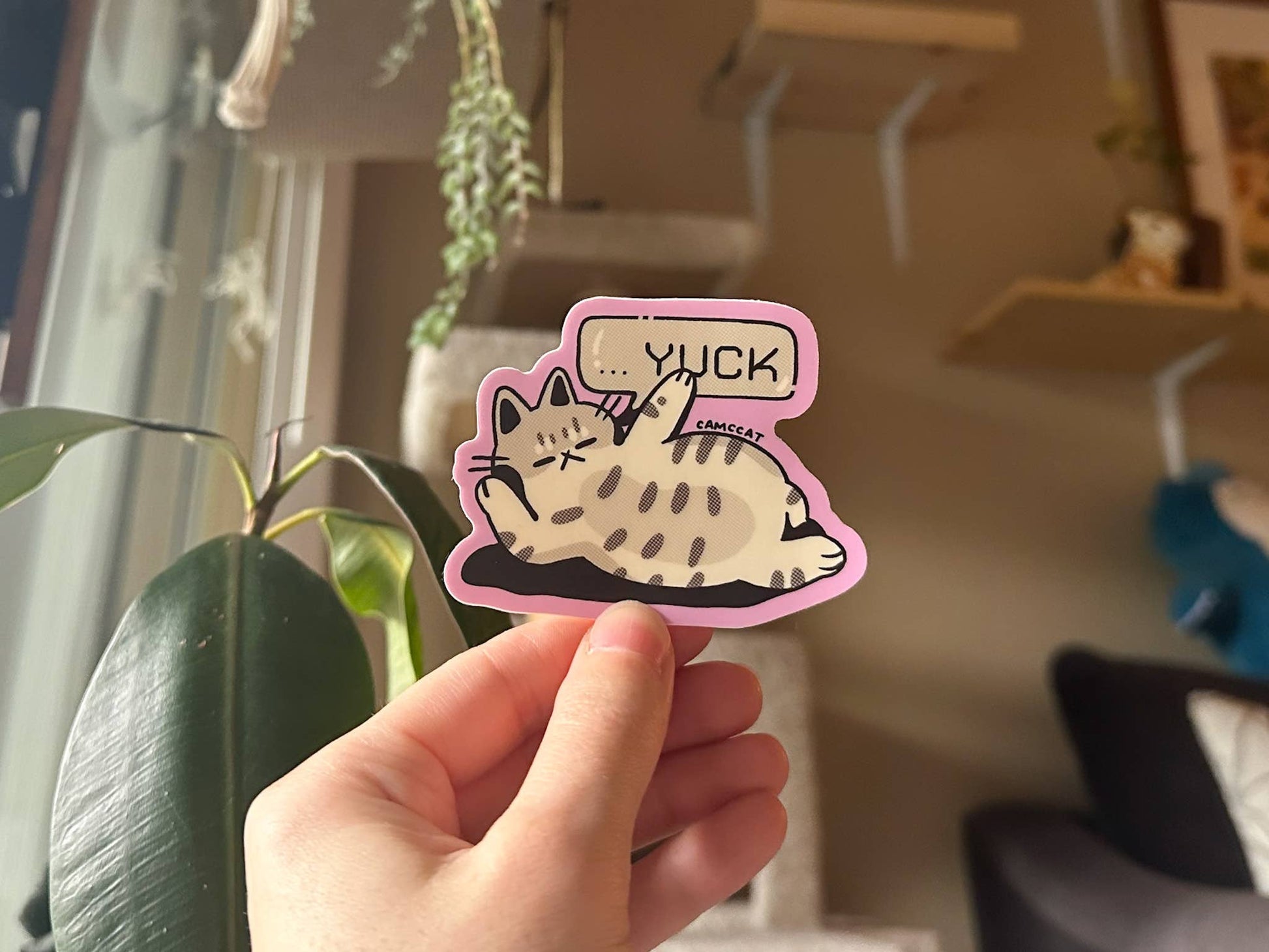 Camccat - Yuck Ugh Cute Pocket Pet Tabby Cat Matte Vinyl Sticker