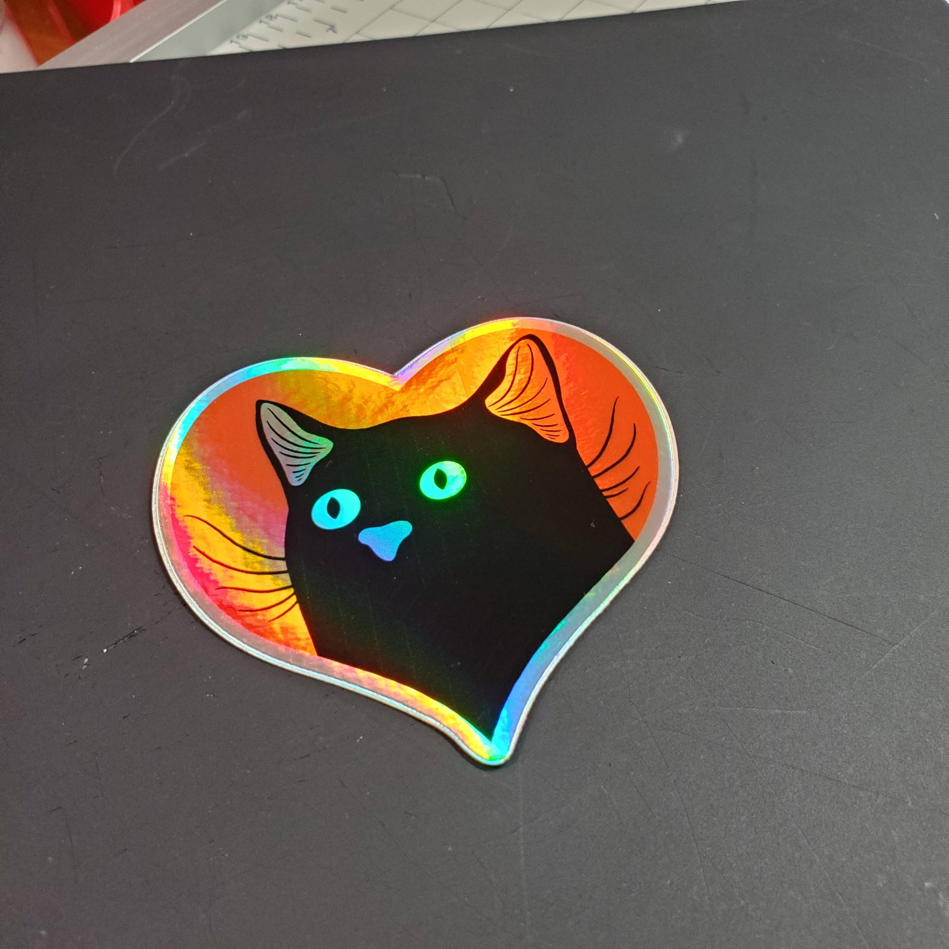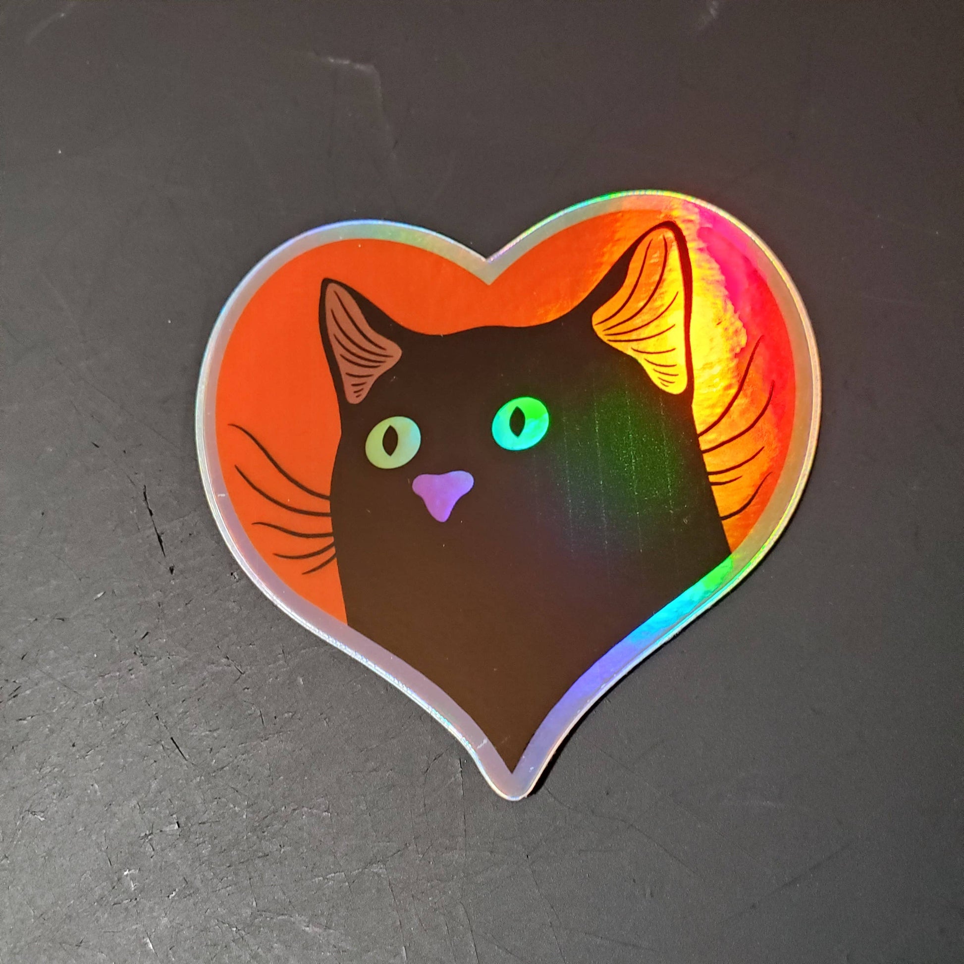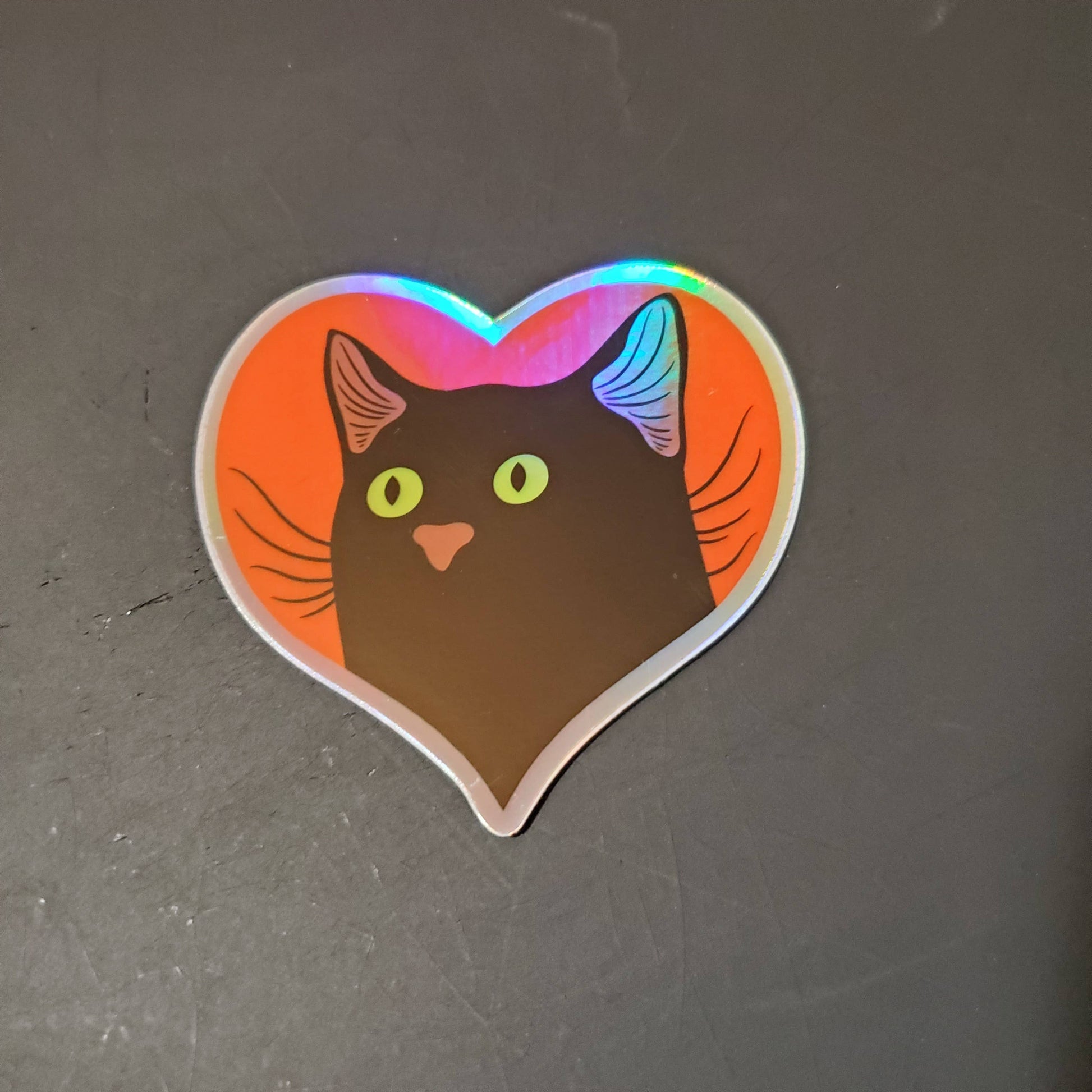 Black Heart Cat, Holographic 3" Vinyl Sticker