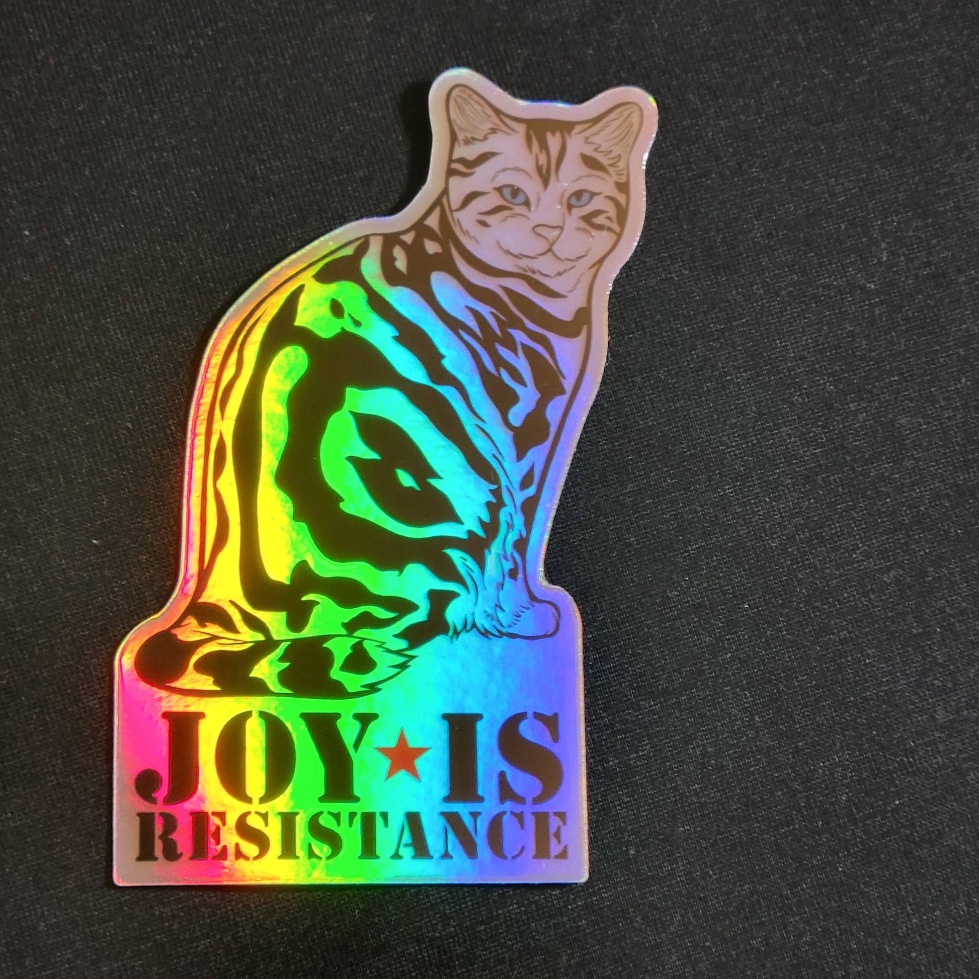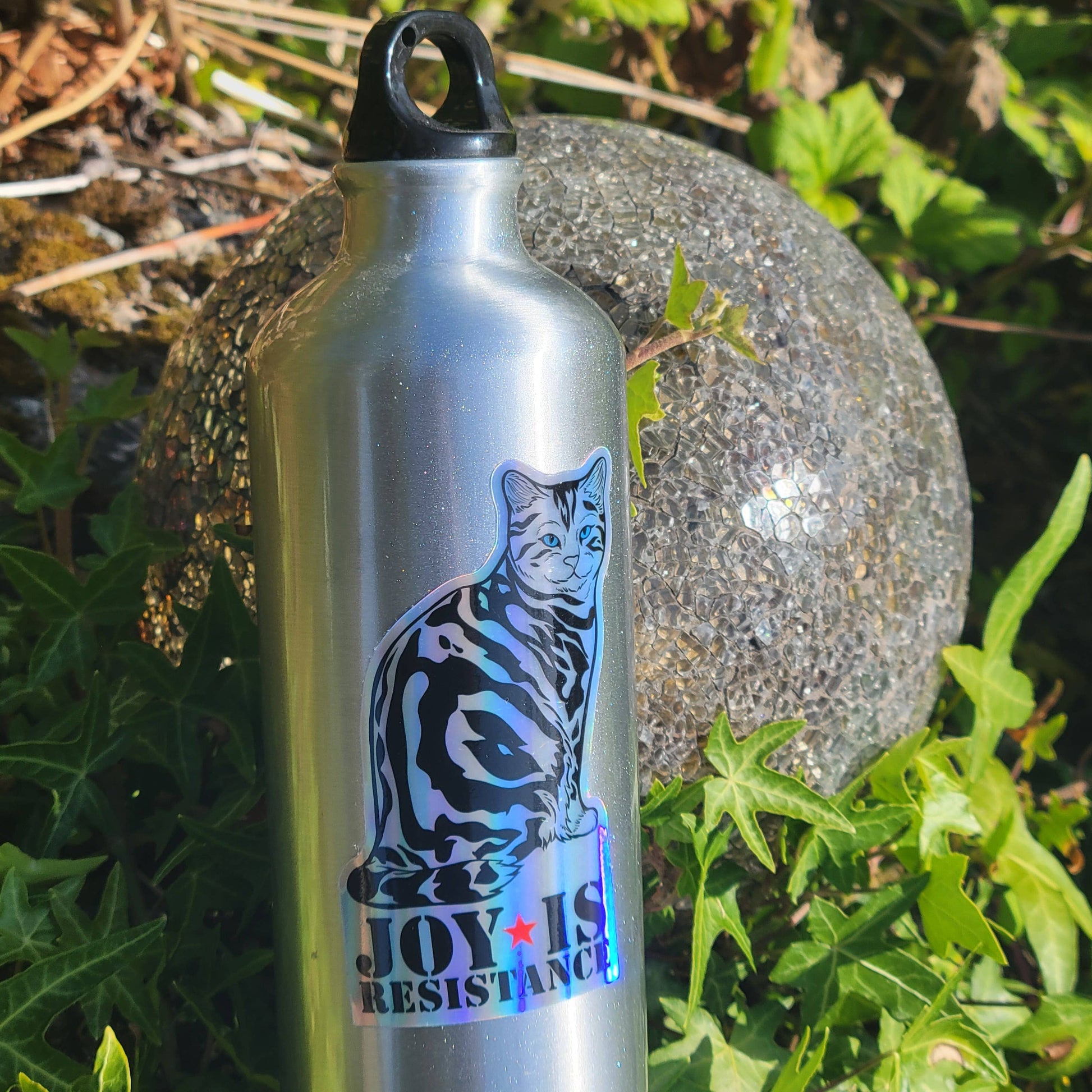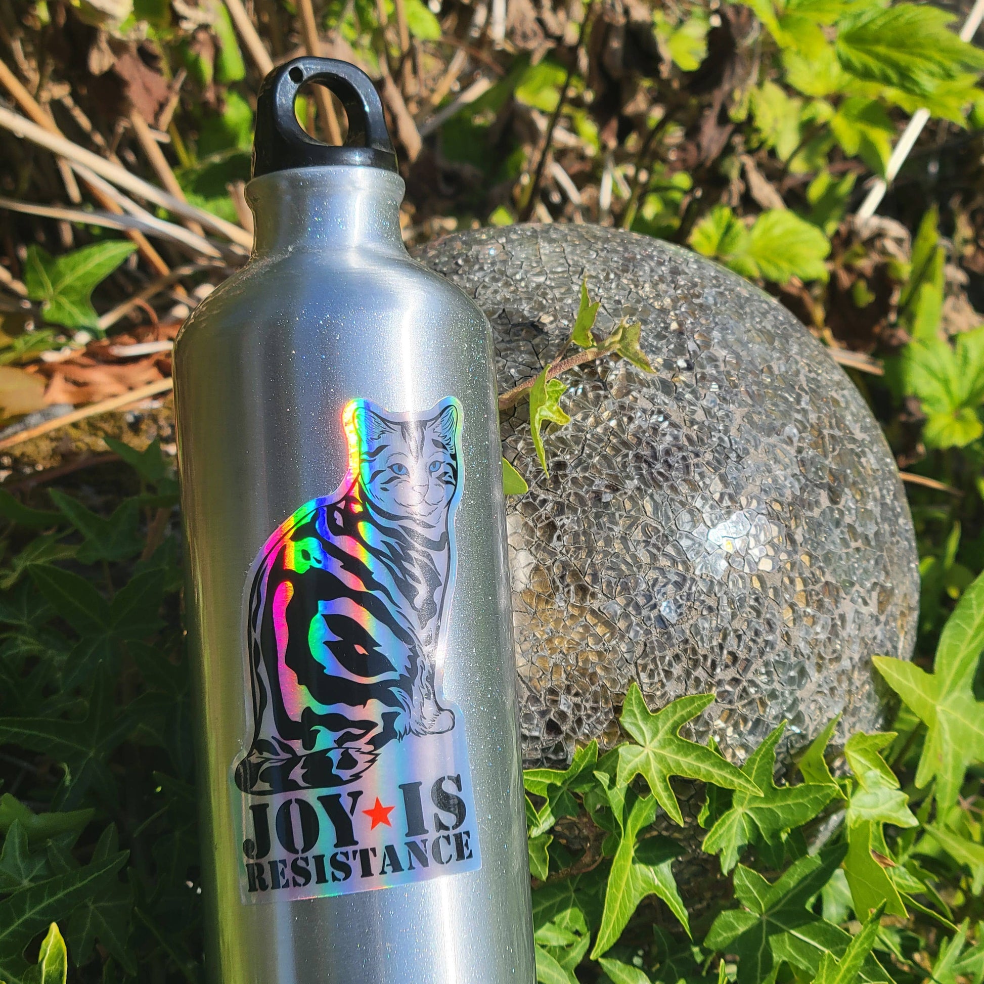 At Cat Champion, we believe in advocating joyfully and abdicating entropy. Our 'Joy Is Resistance' sticker, measuring 4", is a testament to that. Crafted with holographic vinyl, it is a reminder of self-care, inclusivity, and thoughtful indulgence. This vibrant sticker, inspired by our first and only true love - cats, is perfect for adding a touch of joy to any surface. Enjoy cats, enjoy life!