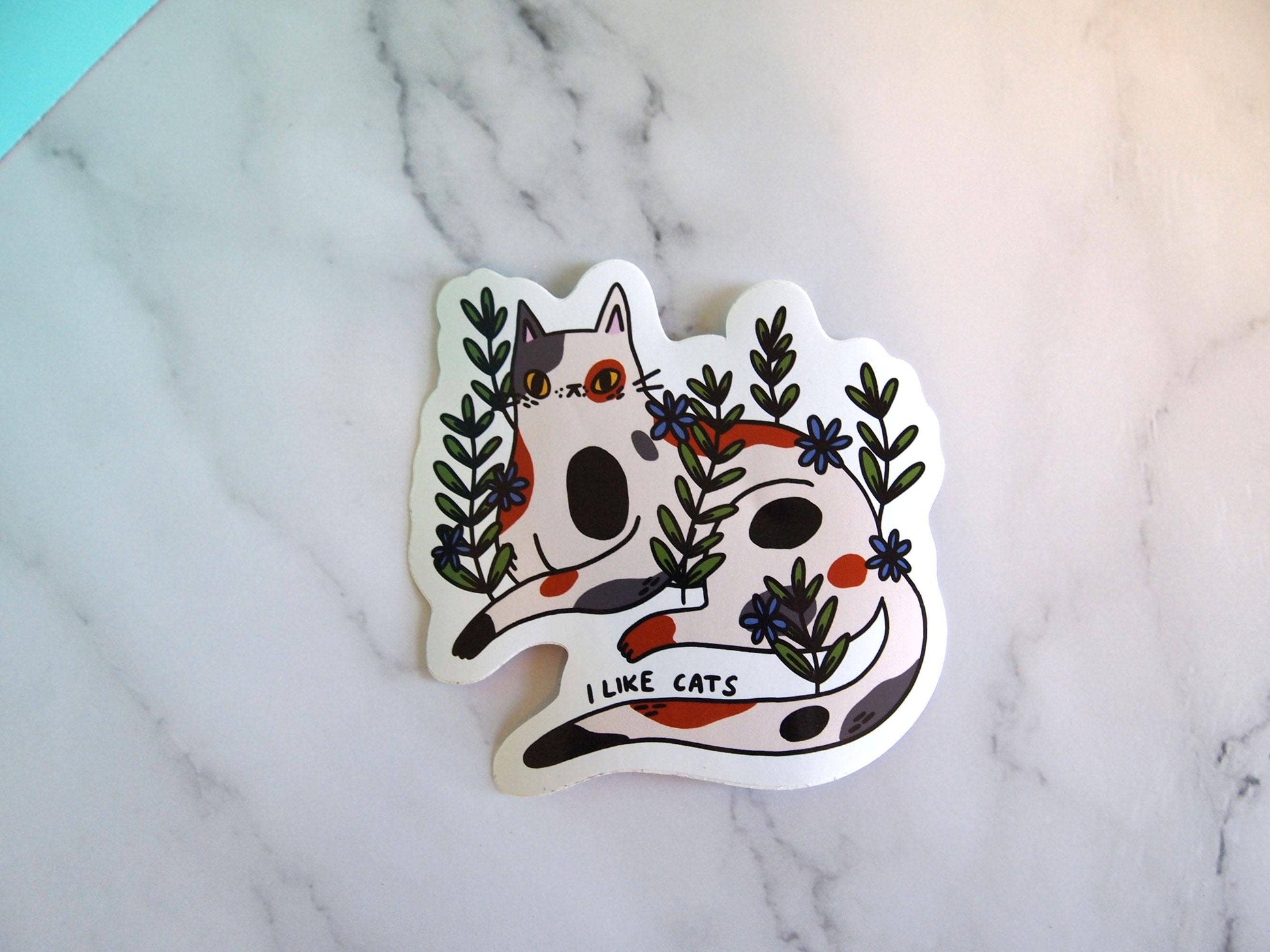 This die cut vinyl sticker features my original illustration of a splodgy calico cat surrounded by flowers and foliage. It has has been professionally printed as a high quality glossy vinyl sticker. These make the perfect stickers for decorating laptops and electricals, journals, sketchbooks or furniture.