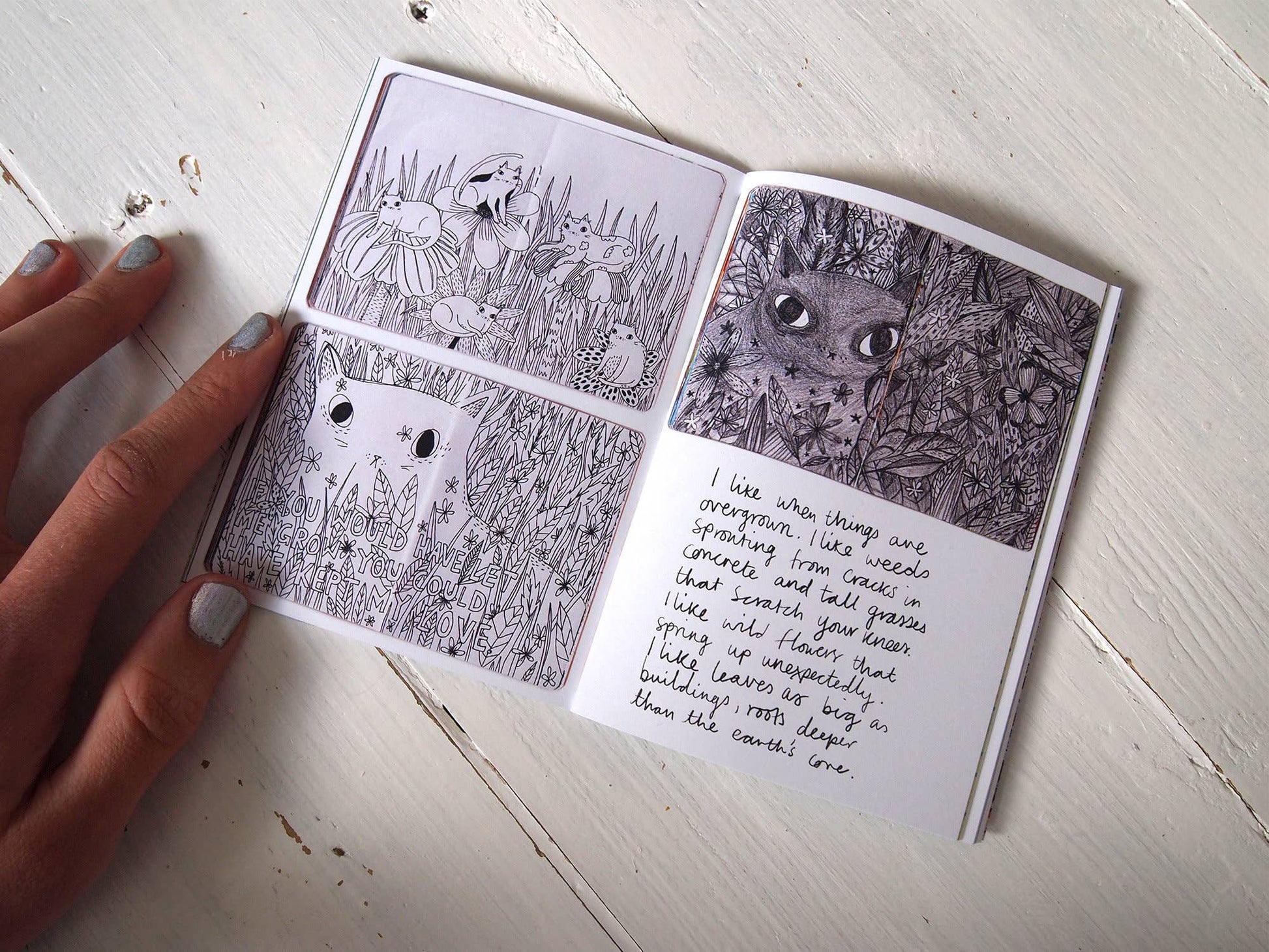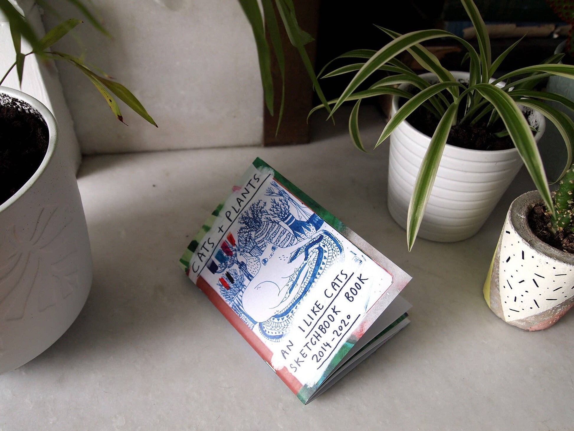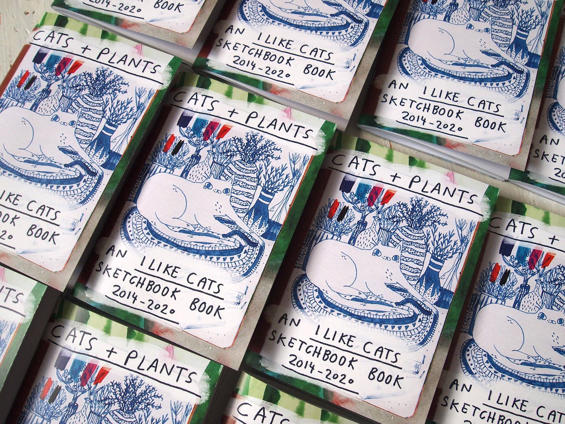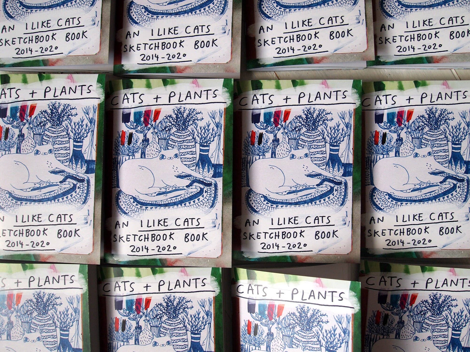I thought it was about time to start collating them into books, and this is the first one; Cats + Plants. I've been busy scanning pages from my sketchbooks, before curating it into this book. The drawings are in all kinds of mediums, from paint and ink to oil pastel and pencil.