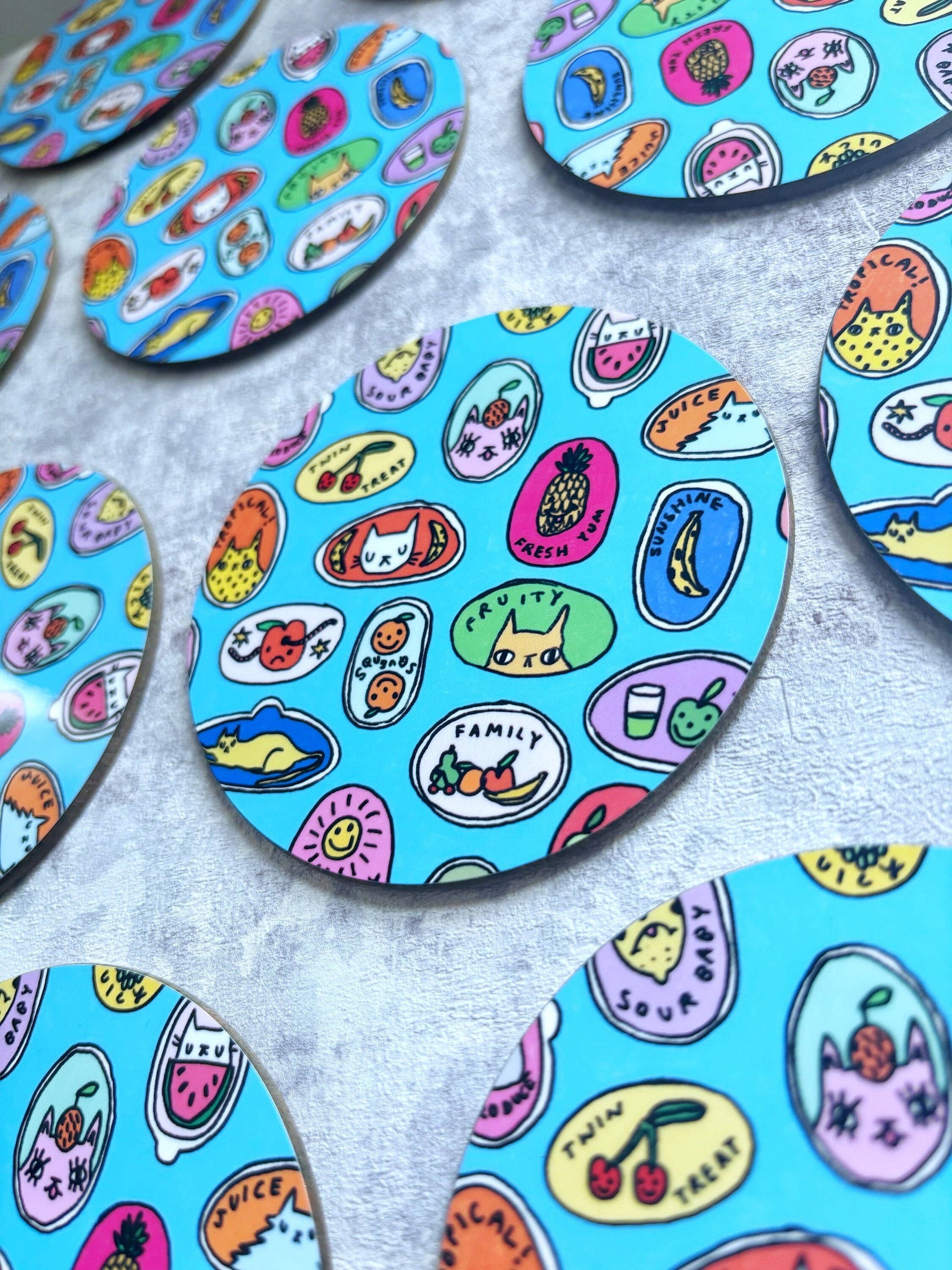 Fruity Cats Sticker Design Drinks Coaster