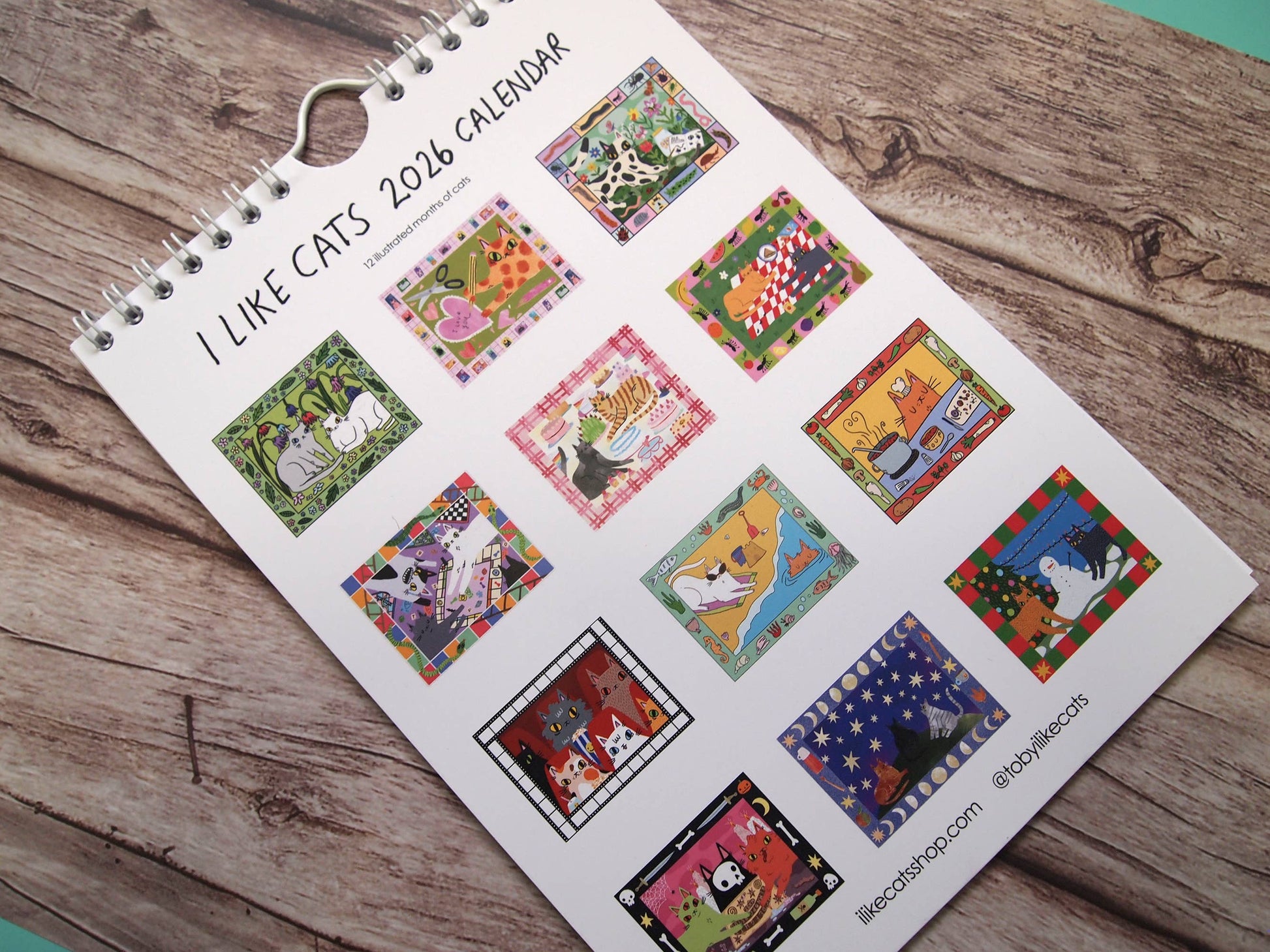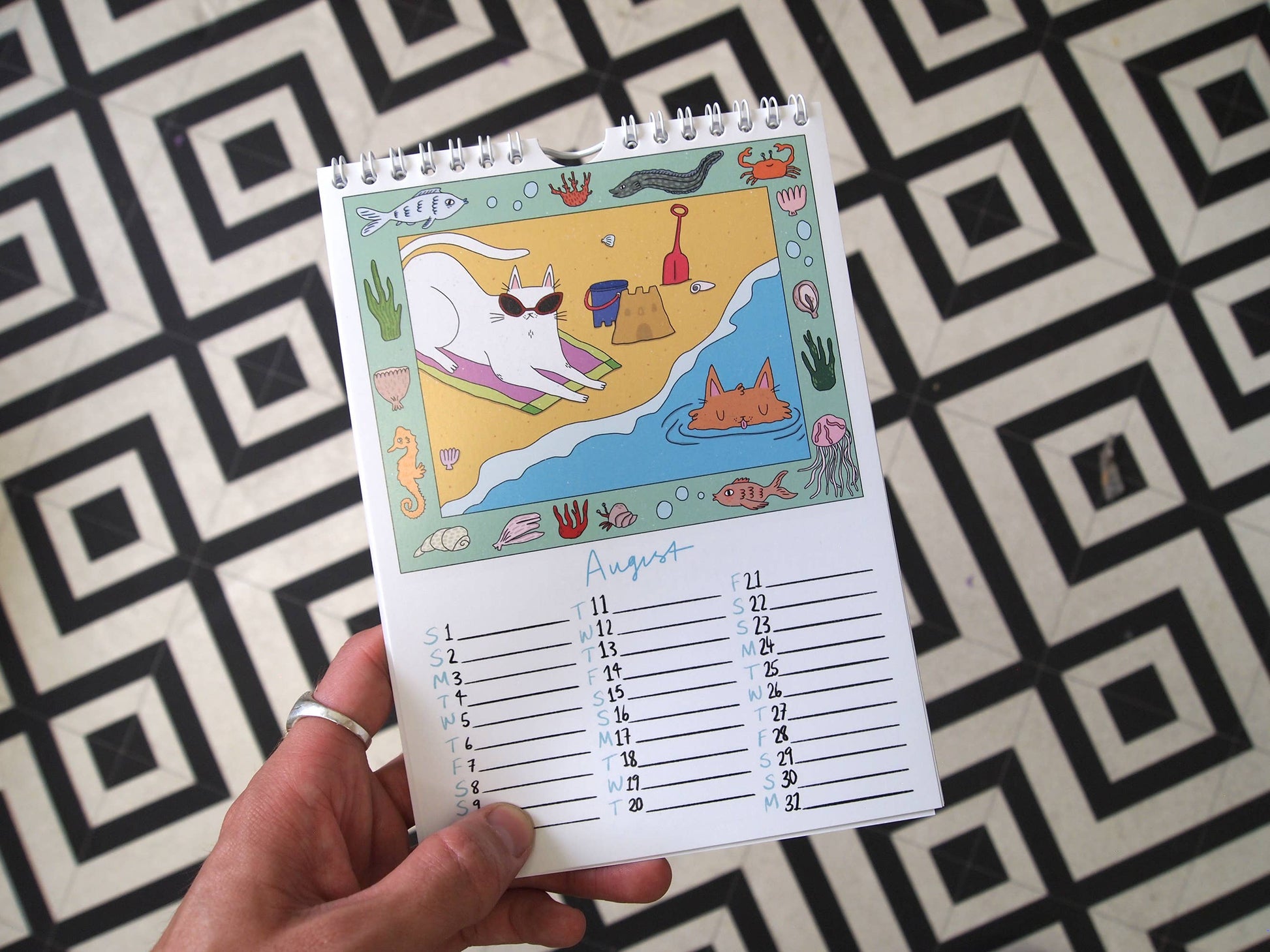 Get ready for the year ahead with this calendar, filled with bright and fun cat illustrations. Each month has a different theme - some are seasonal, some are just for fun. Decorative frames for each month tie it all together, and I had so much fun deciding on what to draw. I love how the calendar looks hung on the wall, filling every space with cats! Each month is illustrated in a different style which means you get to switch it up every 4 weeks!