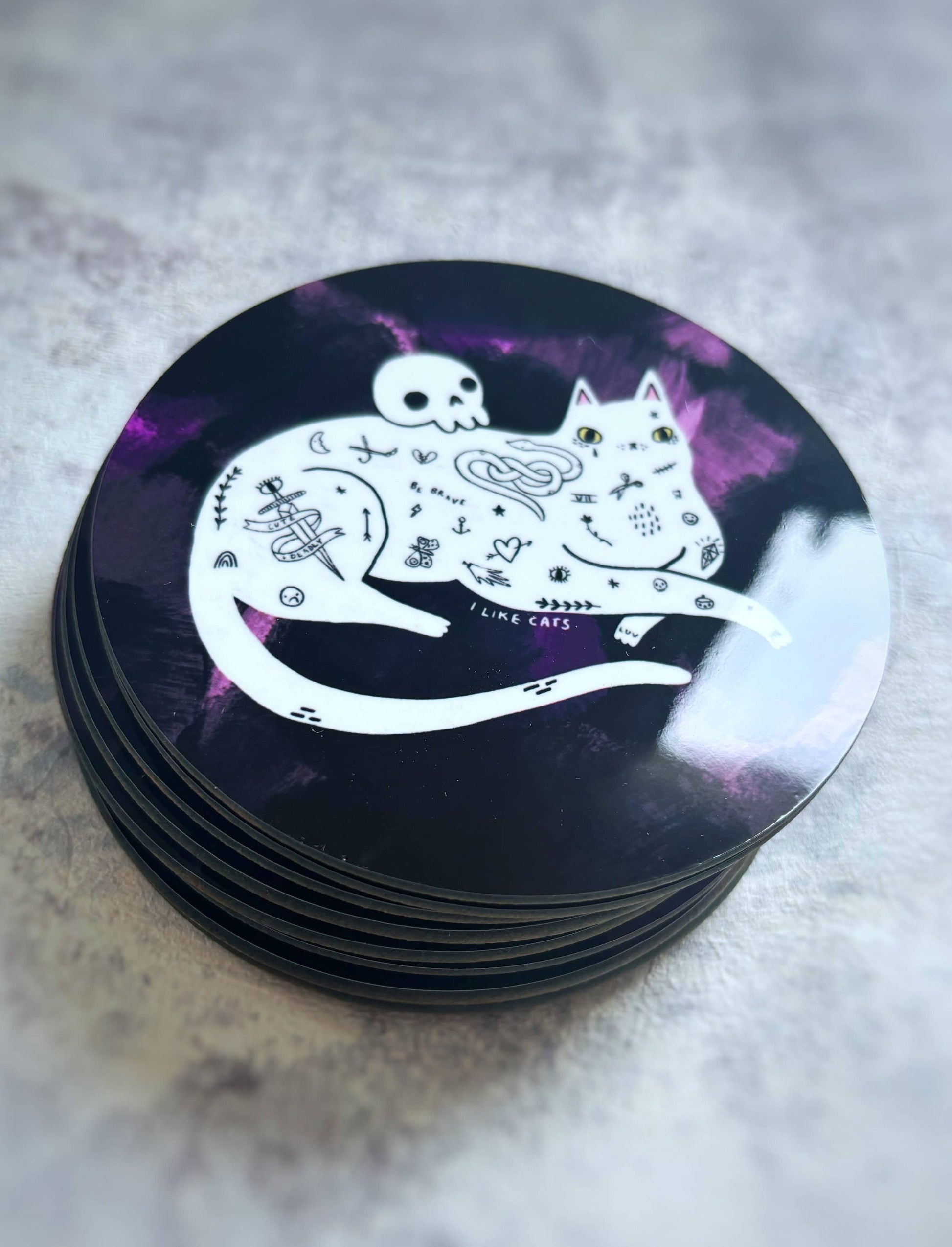 Featuring my original illustration, these coasters are a fun and practical addition to any cat lovers' home!