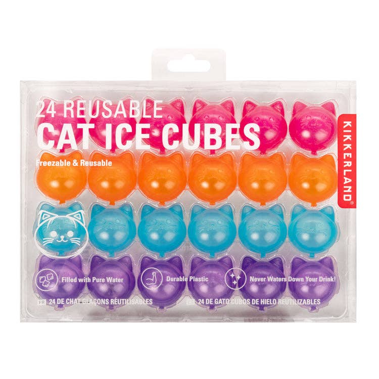 Add playful charm to your drinks with reusable cat-shaped ice cubes. 24 cubes keep drinks cold without dilution!