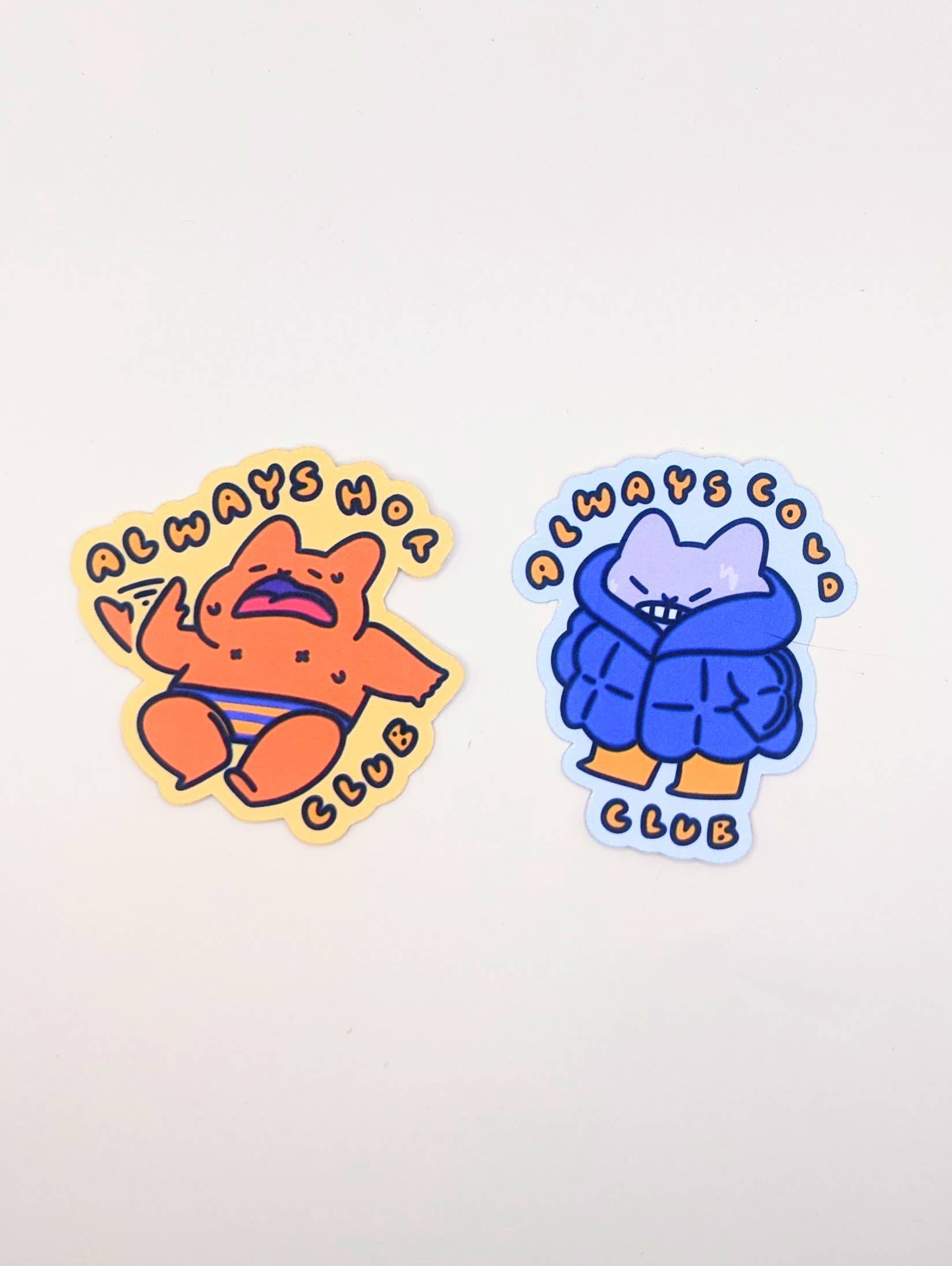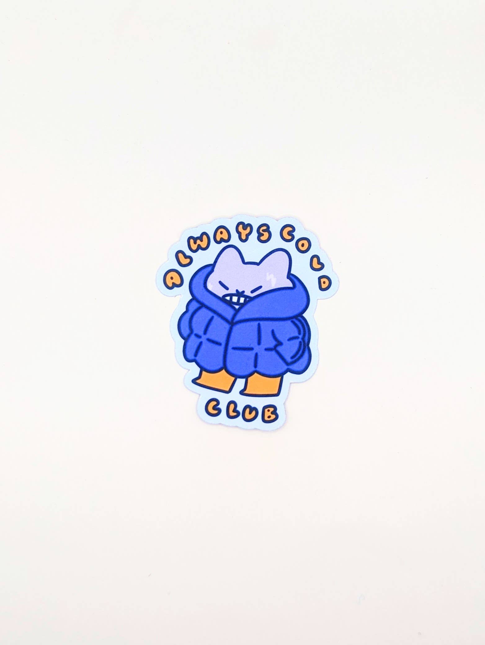 Join the Always Cold Club with this cozy sticker! Featuring a shivering cat bundled up in an oversized puffy coat, this sticker is perfect for anyone who knows the struggle of being perpetually chilly. Made from durable waterproof vinyl, it’s ready to bring a little extra warmth to your laptop, water bottle, or notebook. Perfect for cold-weather enthusiasts and eternal shiverers alike!