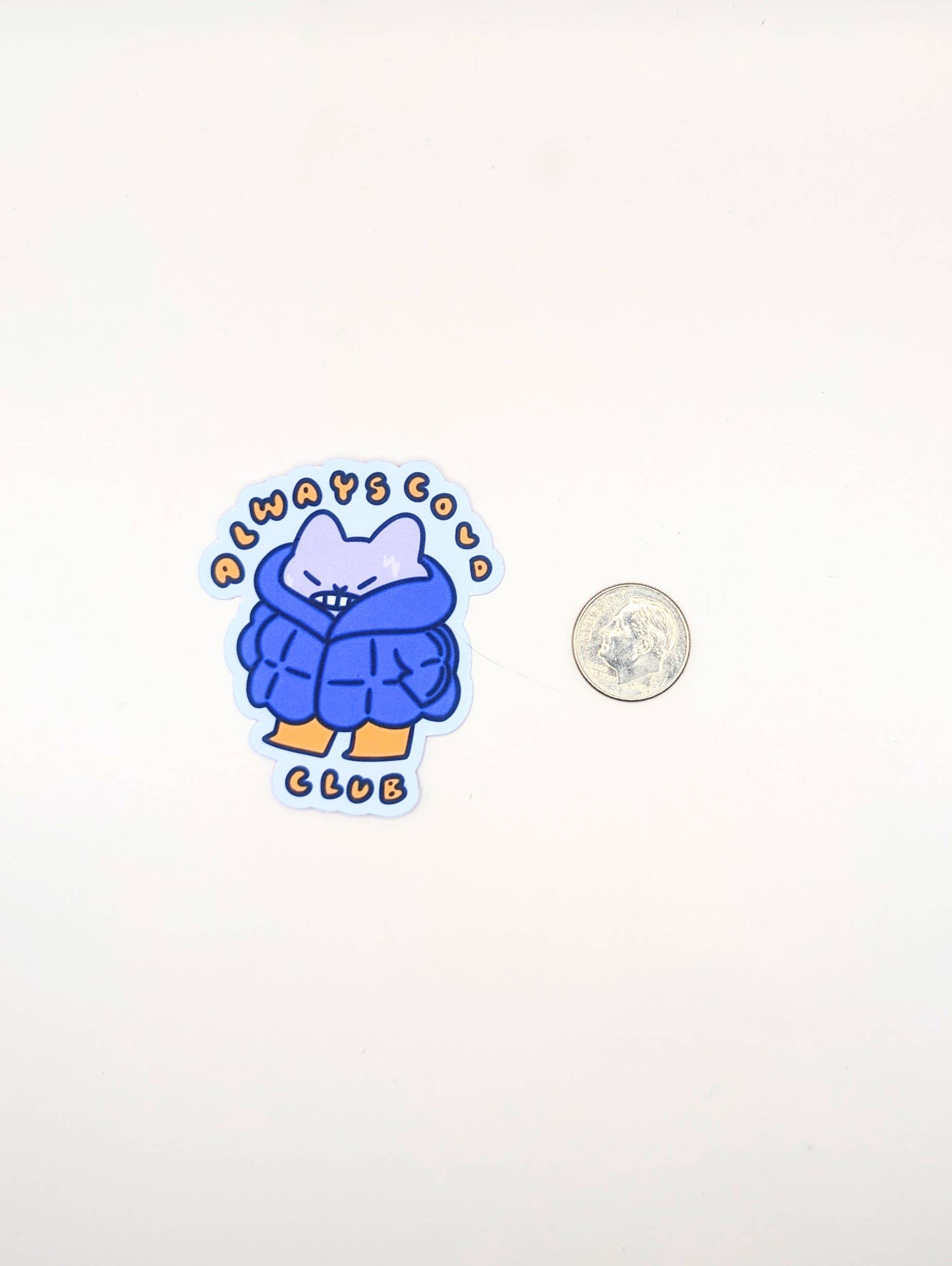 lauradzeng - Always Cold Club Funny Cat Relatable Vinyl Sticker