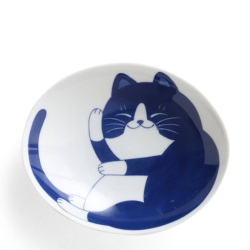 One more thing you never knew you needed. The Blue & White Cat Collection. This bowl/plate is perfect for scooping up every last good morsel.