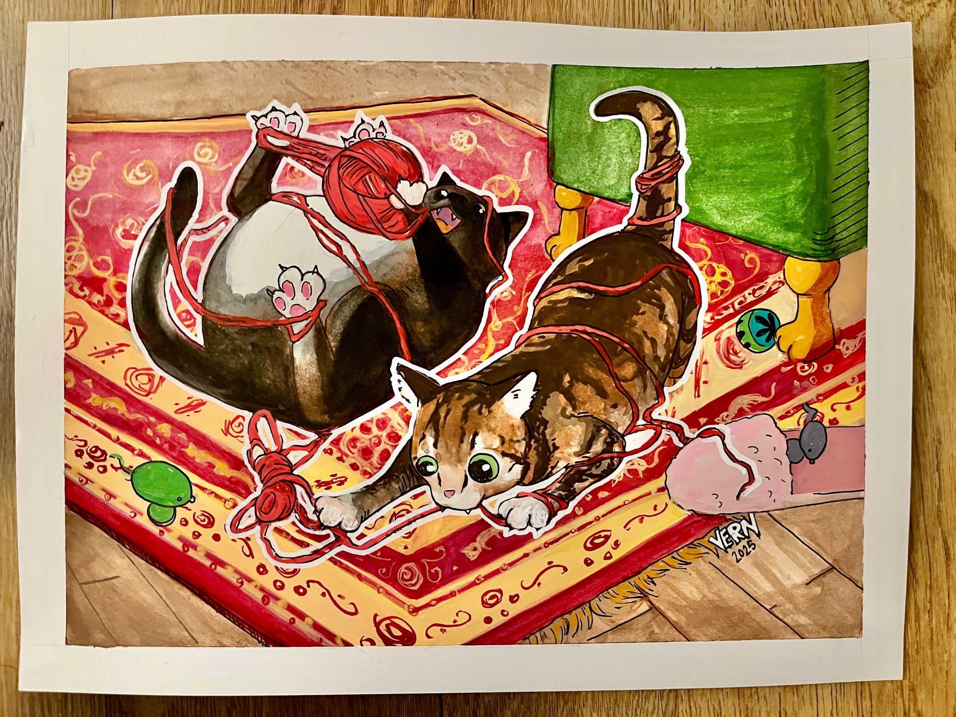 Original framed mixed media painting by Vernalyn Taganna from Long Beach. 100% of the sale will be donated to spcaLA, the rescue that saved this bonded pair! These cute kitties are still waiting for their forever home – click here to learn more and apply to adopt.