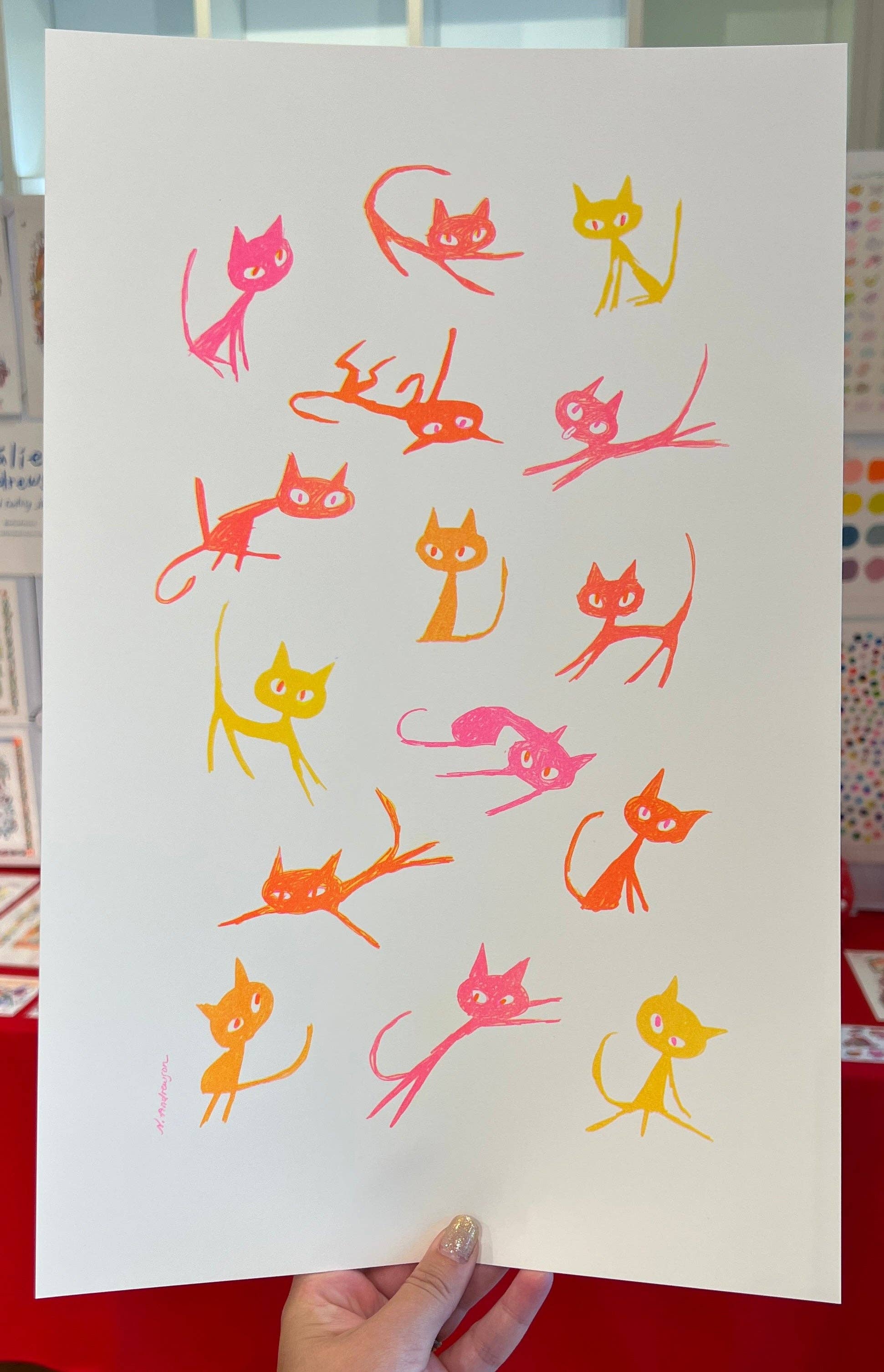 This is a two color Riso print made by layering fluorescent pink and yellow. Hand printed in Natalie's Los Angeles studio.