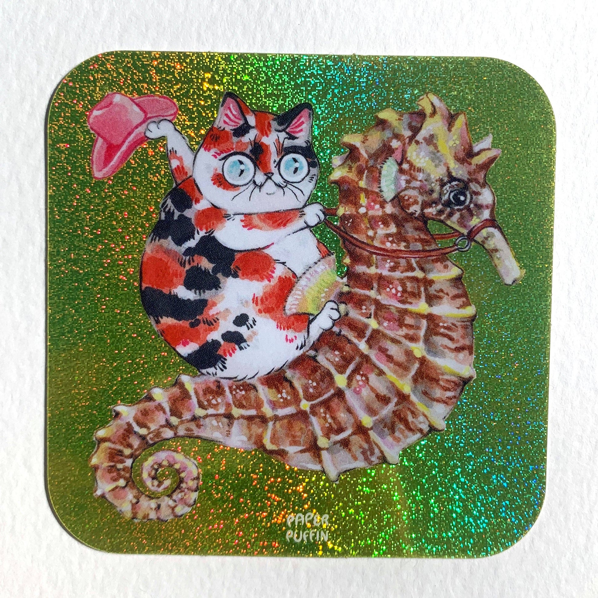 Paper Puffin - Cowboy Cat Seahorse Glitter Sticker