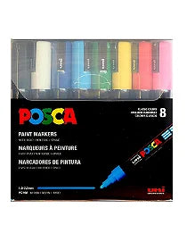 POSCA water-based paint markers can be used on almost any surface including paper, wood, textiles, cardboard, metals, ceramics, glass, plastic, and more. They are alcohol & solvent free, and permanent on most porous surfaces. The metallic colors offer a shimmery effect while the rest of the colors dry to an opaque matte finish. The blendable paint can be used as a wash using water and a brush.