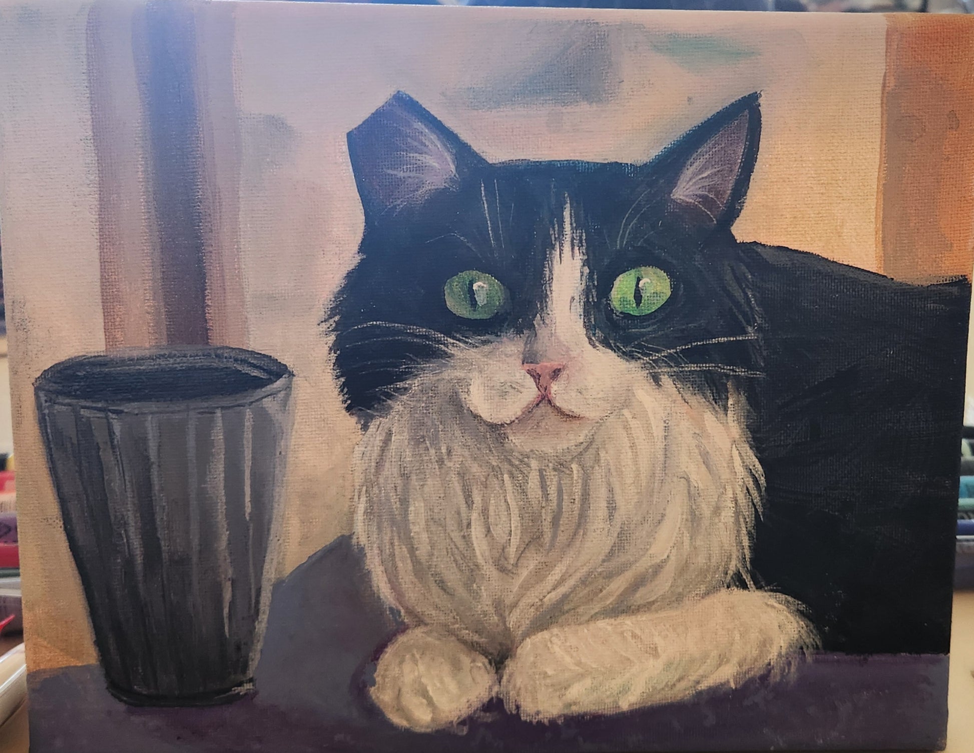 Artist bio: I'm Sierra, a 17 year old living here in Long Beach! I'm a cat, art, and raccoon lover which is why Raccoon was a perfect pick for my piece! I painted her in acrylic next to a trashcan as a tribute to her name like the little trash panda she is!