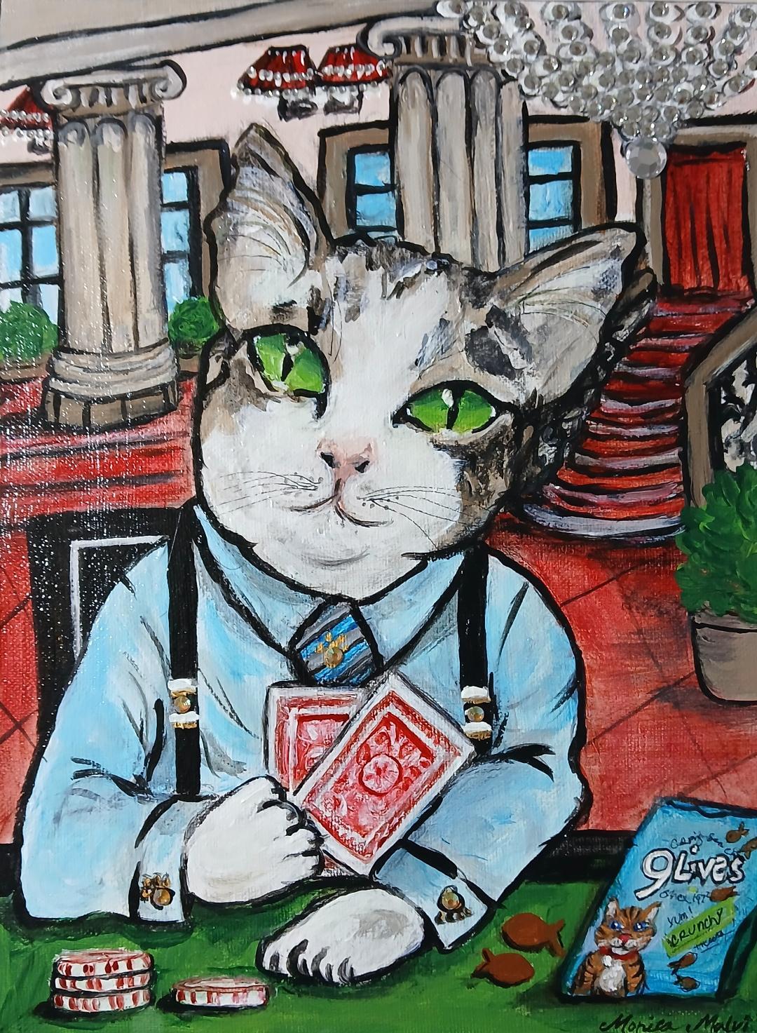 Artist bio: I am the artist Monica Malvi Dollison. Originally from Buenos Aires Argentina, living in Echo Park, California. This is my art submission "Reggie The Poker Face Cat."