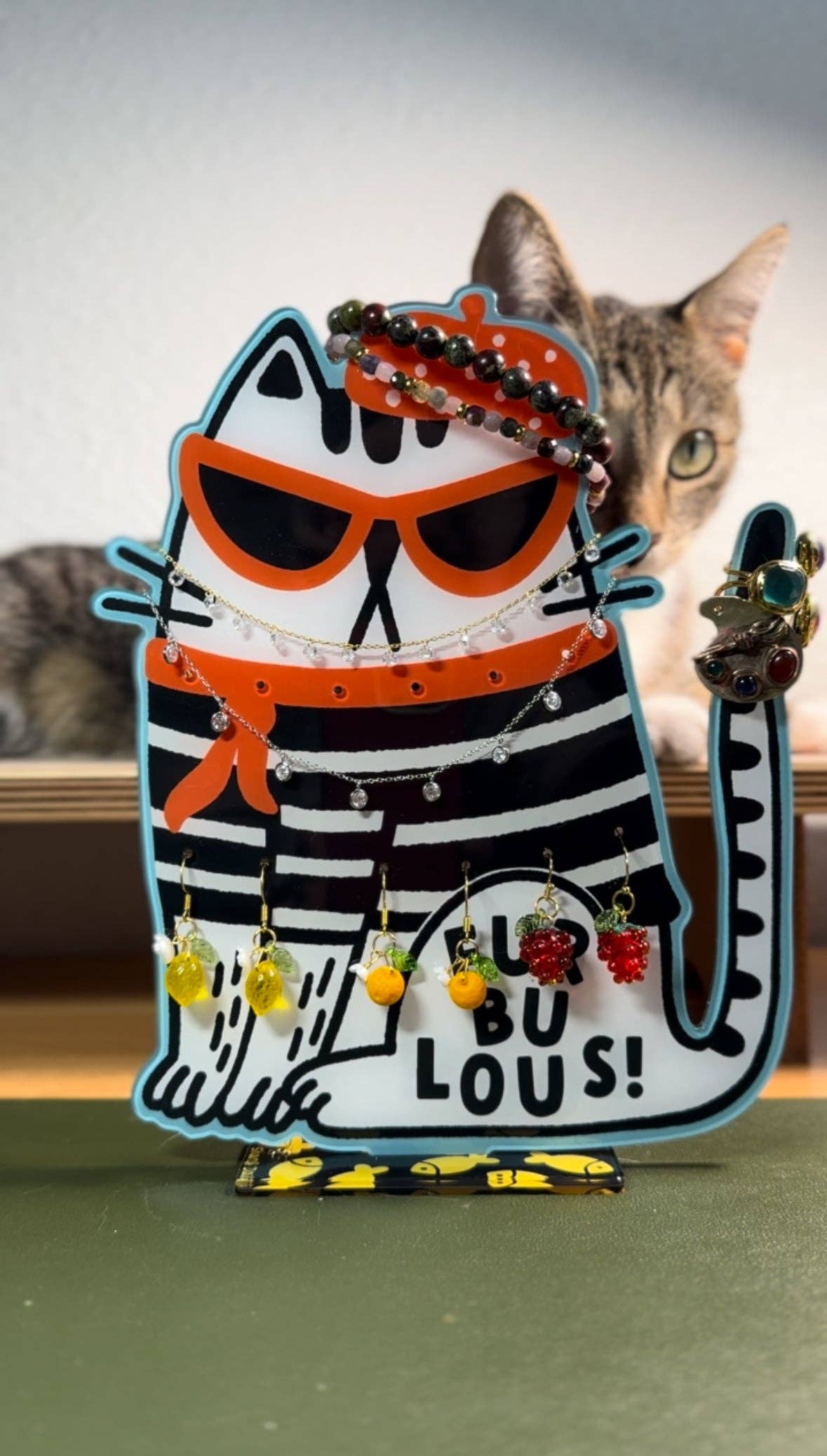 Dimensions: 7"x9" Meet this unique jewelry stand. Holds: Two necklaces, Several bracelets. Rings from size 4 to size 9, 6 pairs of earrings.