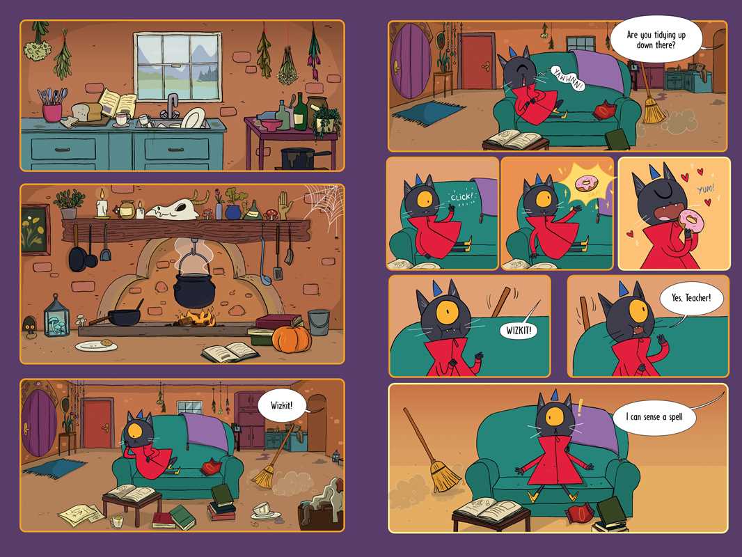 It’s a wild, enchanted, wonderful world out there, way beyond the fjord that a one-eyed cat named Wizkit calls home. But Wizkit wouldn’t know anything about that—as a Wizard’s apprentice, all her lessons are indoors, and she’s far too lazy to go out exploring. There’s no need to—she already knows enough spells to conjure up delicious snacks whenever she’s hungry!