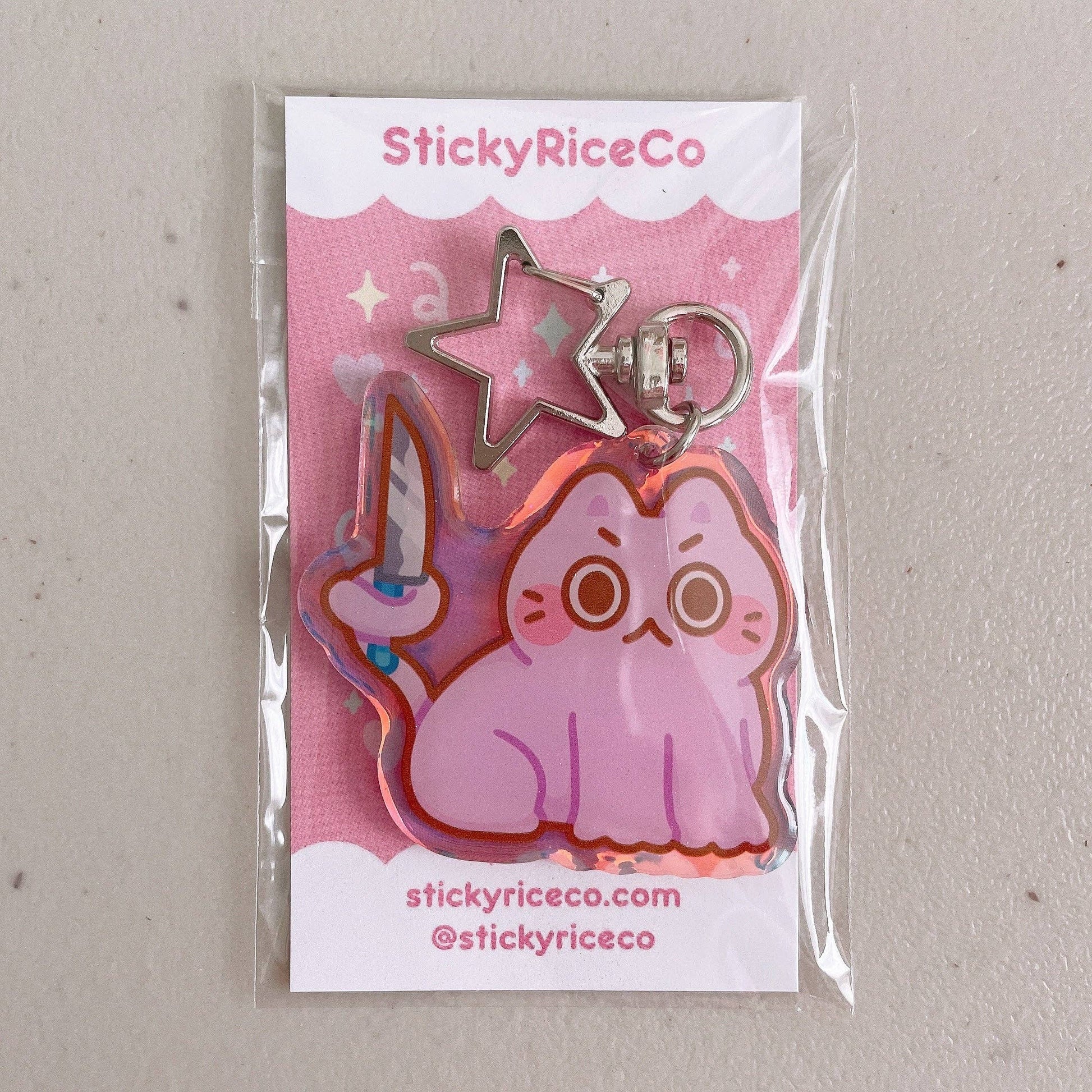 This angry but cute knife cat keychain is the perfect accessory to your phone, purse, backpack, etc!