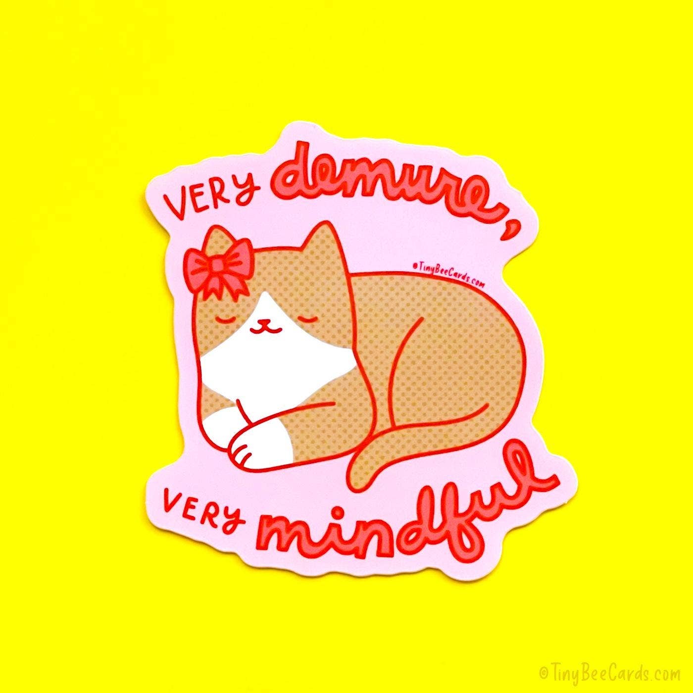 She's in her demure era, and she's totally uninterested in knocking over your coffee or scratching up your sofa. With paws neatly tucked, this cat is all about inner peace and quiet moments. Perfect for adding a touch of peace to your journal, planner, or laptop, this vinyl sticker will remind you to take a deep breath and embrace the stillness. Because who couldn't use a little more mindful cat energy in their life?