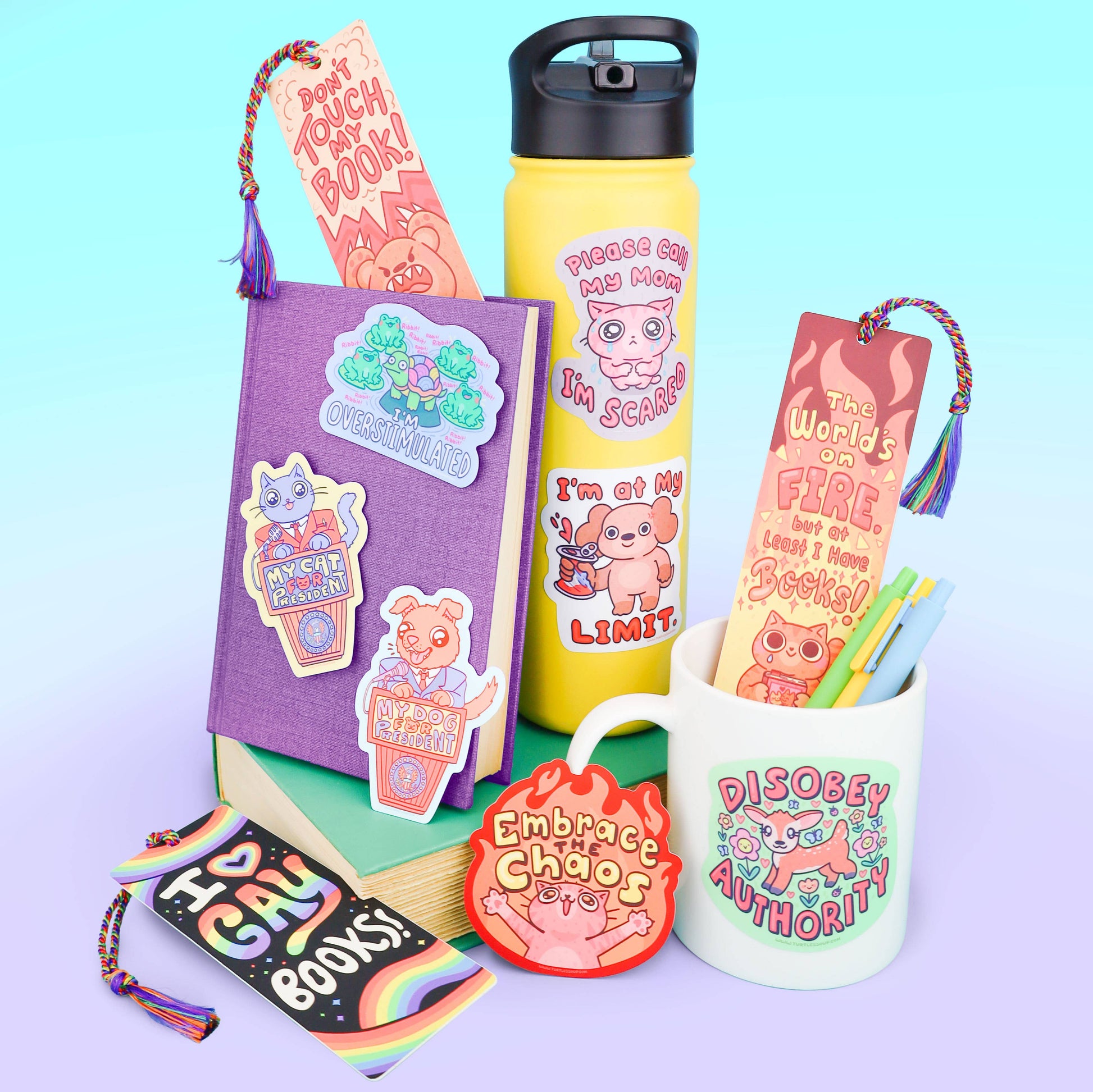 Turtle's Soup - World’s On Fire, Cat, Anxious, Bookmark with Tassel