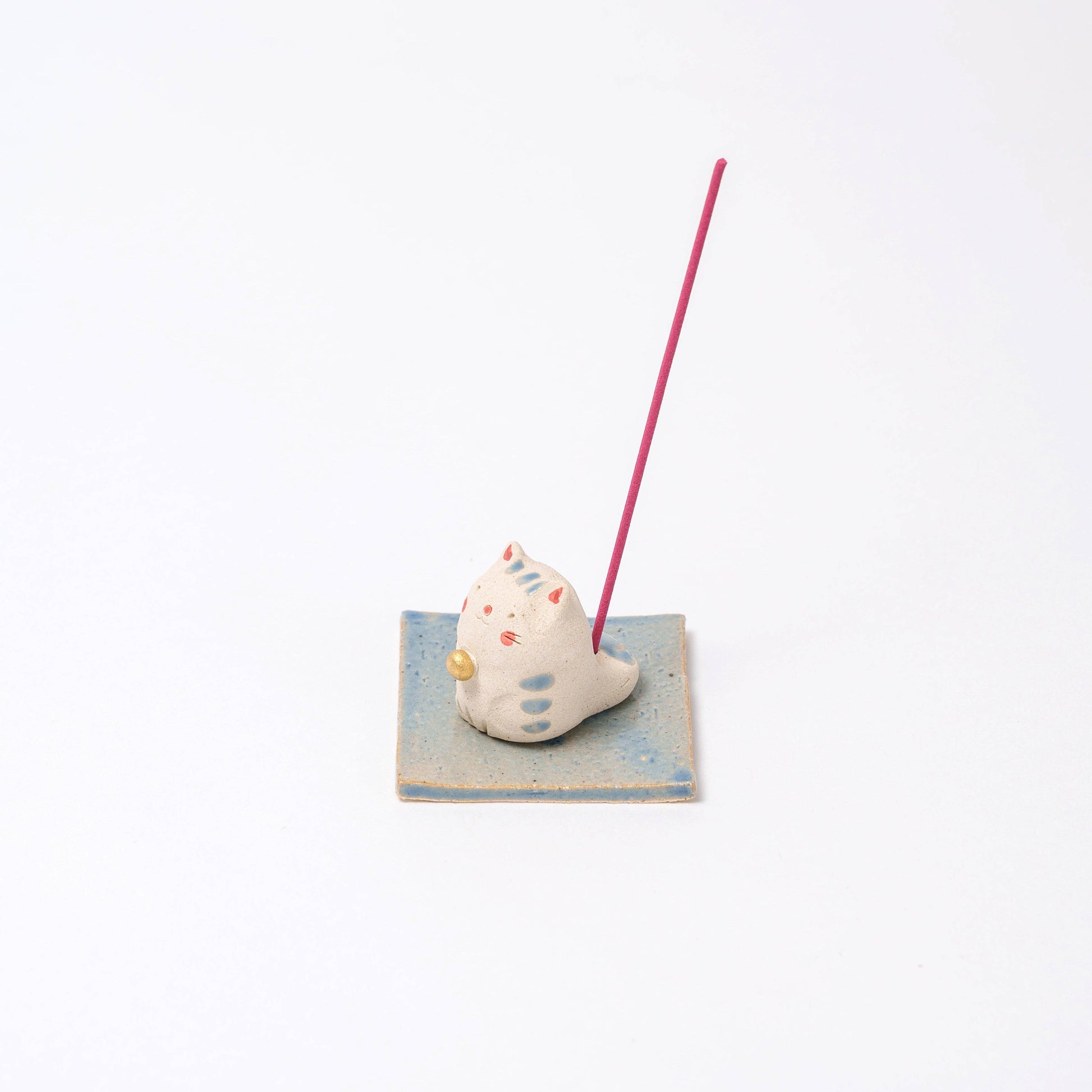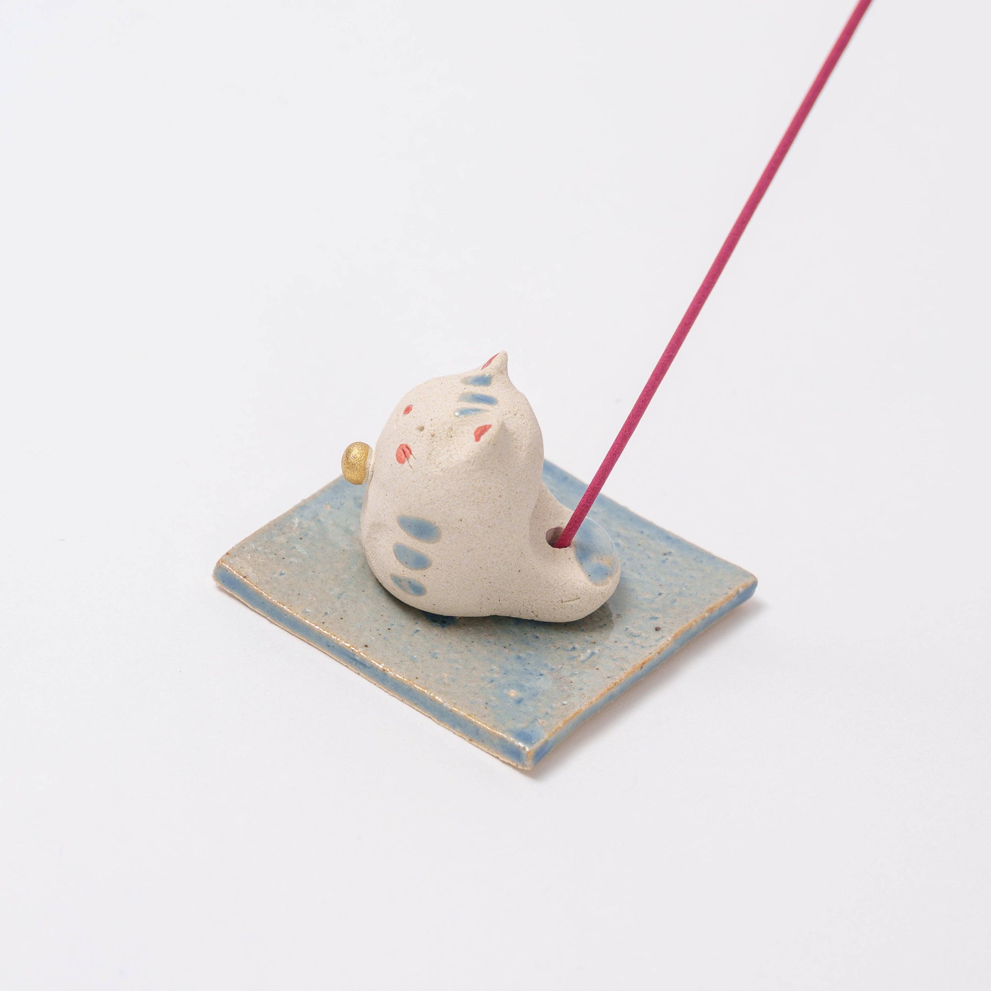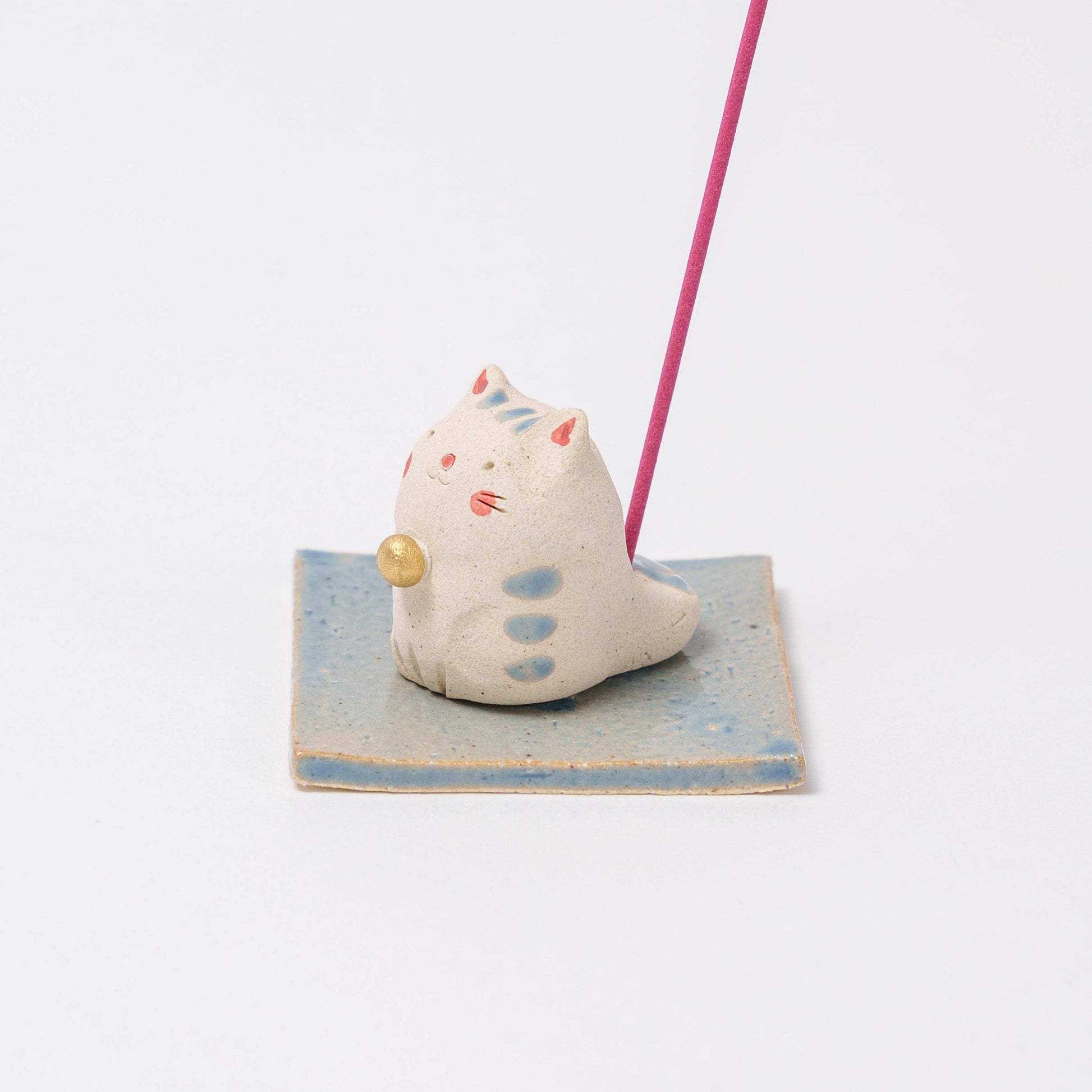 Handmade Clay Blue Cute Cat Incense Holder Gift Set - the perfect addition to your home or office! Crafted with care using high-quality clay, this incense holder is designed in the shape of an adorable cat, adding a touch of playfulness and charm to any space. The soft blue color adds a calming and serene feel, while the handmade nature ensures that each piece is unique and one-of-a-kind. The incense holder is designed to securely hold incense sticks, making it an ideal choice for meditation or relaxation sessions. This gift set comes beautifully packaged in a stylish and elegant gift box, making it an ideal gift for any occasion.