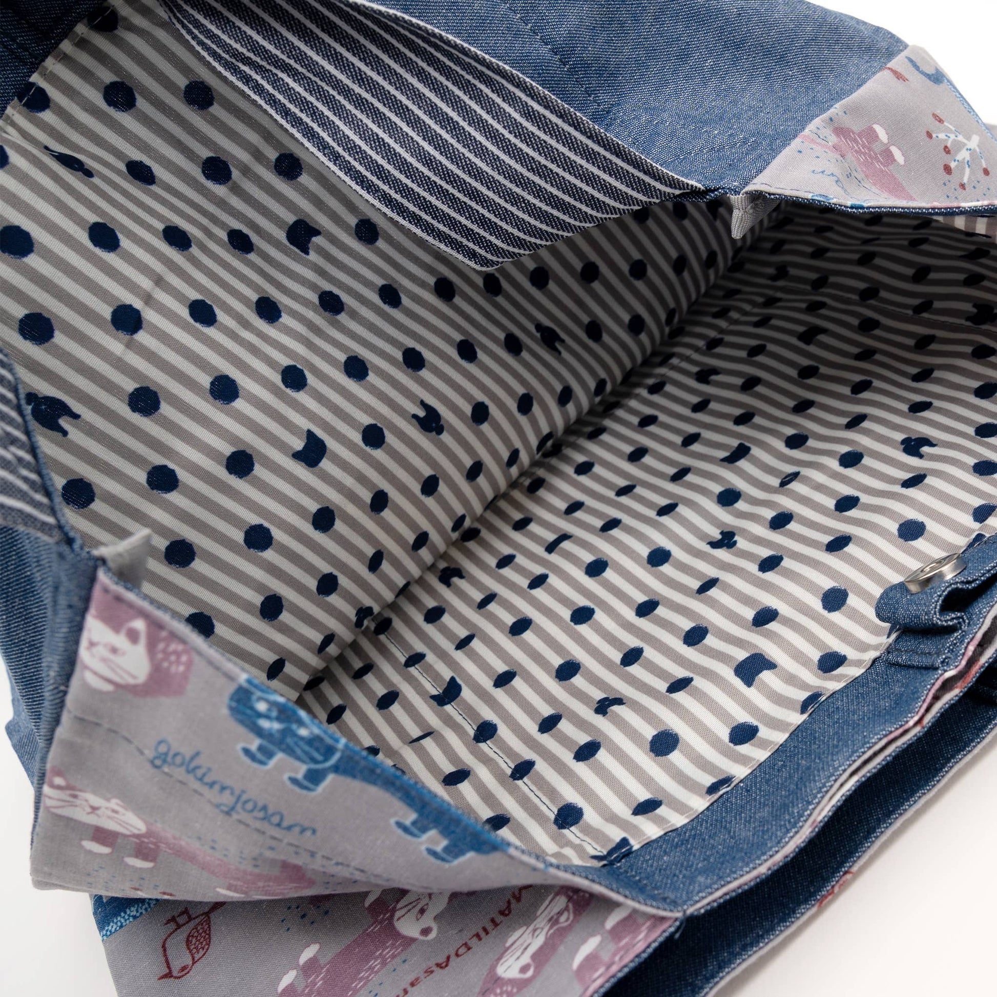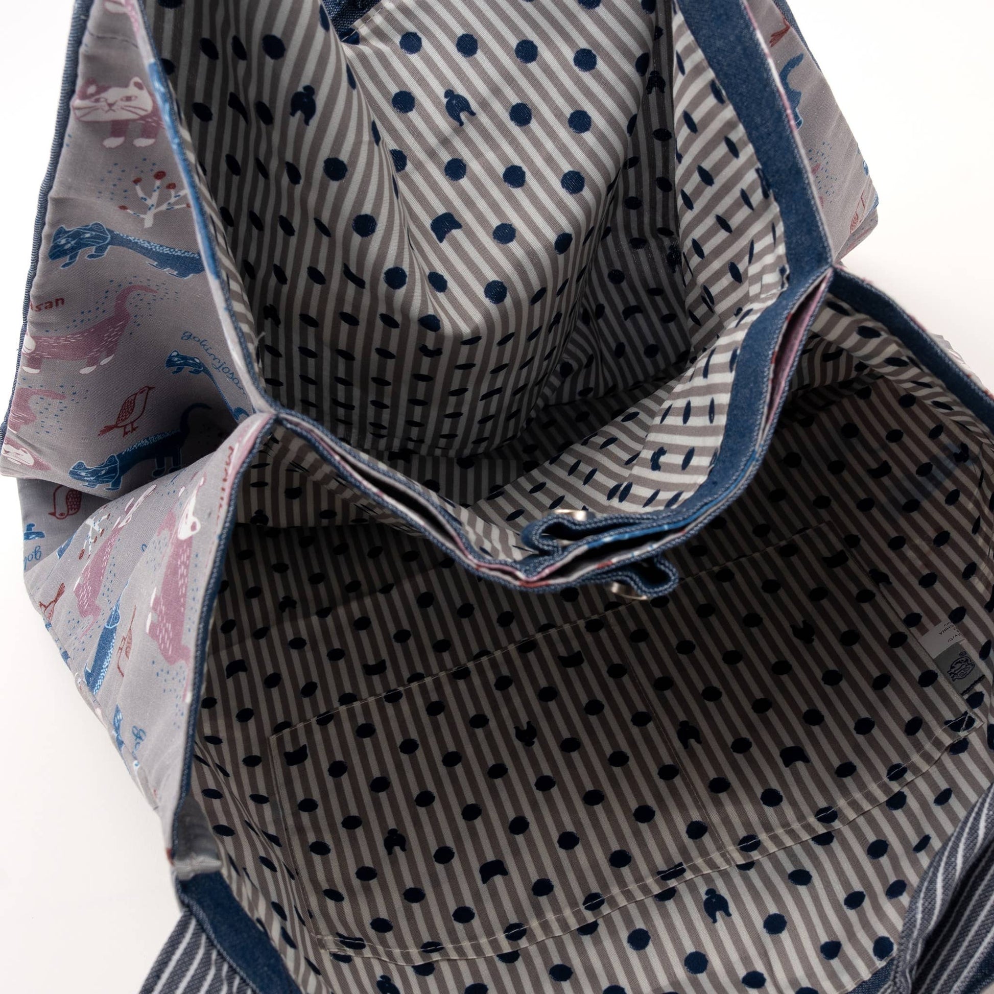 Kusuguru Japan Cats Embroidered Large Tote Bag - Blue