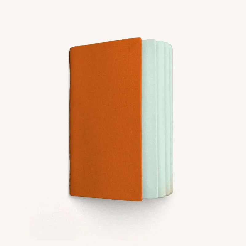 5.75” tall and 4" wide with a mandarin cover and powder green interior pages. 48 pages per sketchbook. Paper is 100% recycled pulp, FSC certified. Made in the USA.