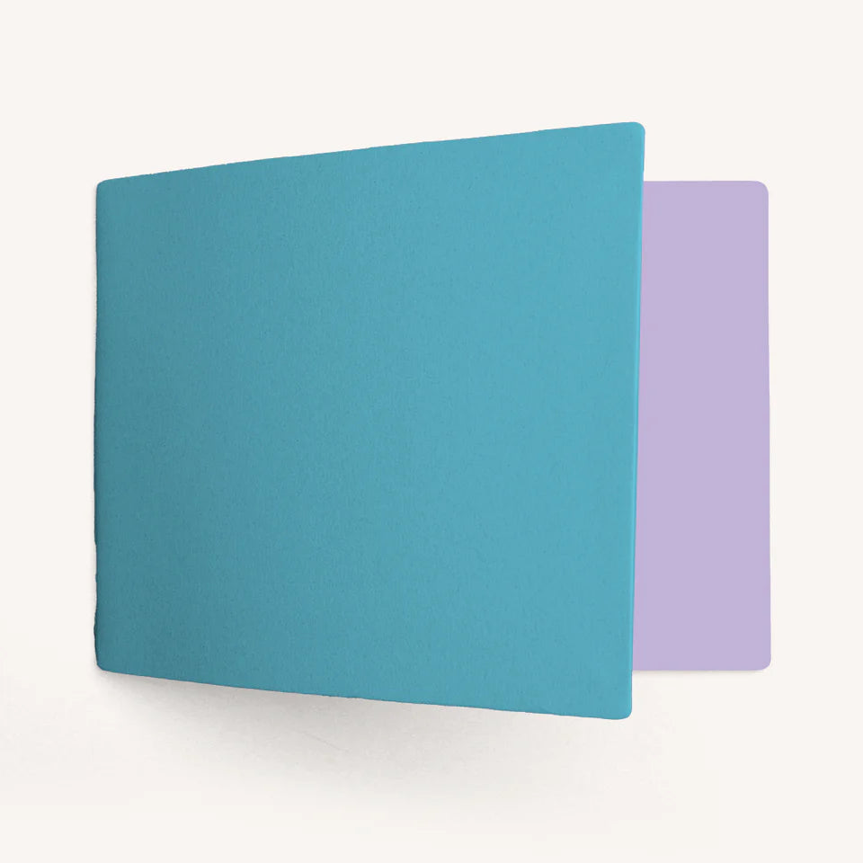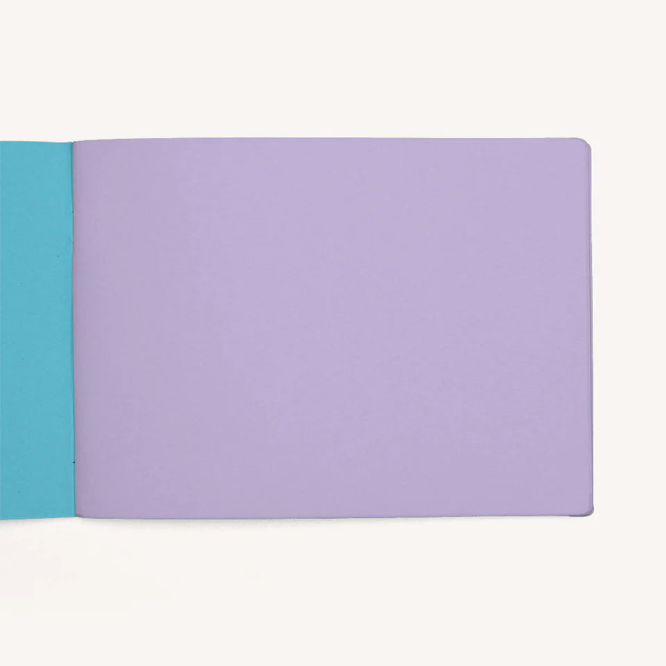 5.75” tall and 8" wide with a turquoise cover and lavender interior pages. 48 pages per sketchbook. Paper is 100% recycled pulp, FSC certified. Made in the USA.
